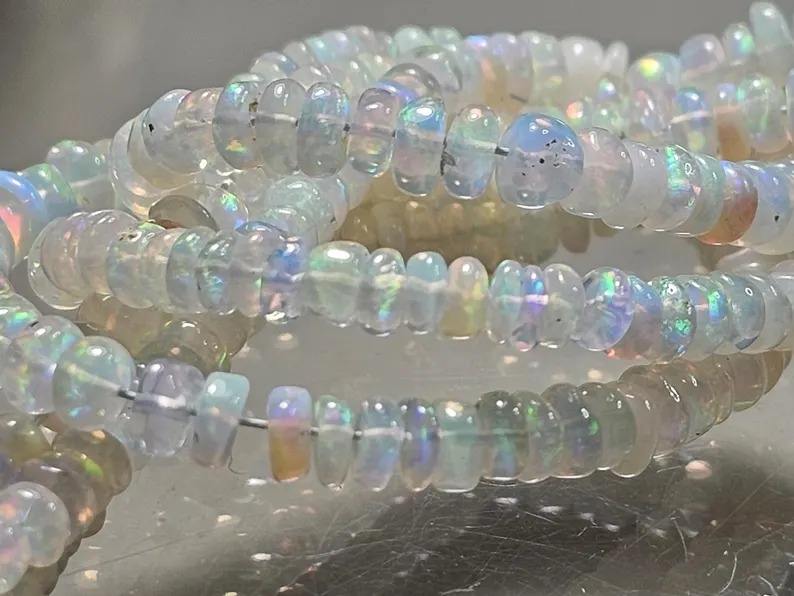 AA โอปอลเอธิโอเปียนธรรมชาติลูกปัดหิน4-4.5มม. สีรุ้งเรียบได้รับการรับรองจากบุคคลที่สาม