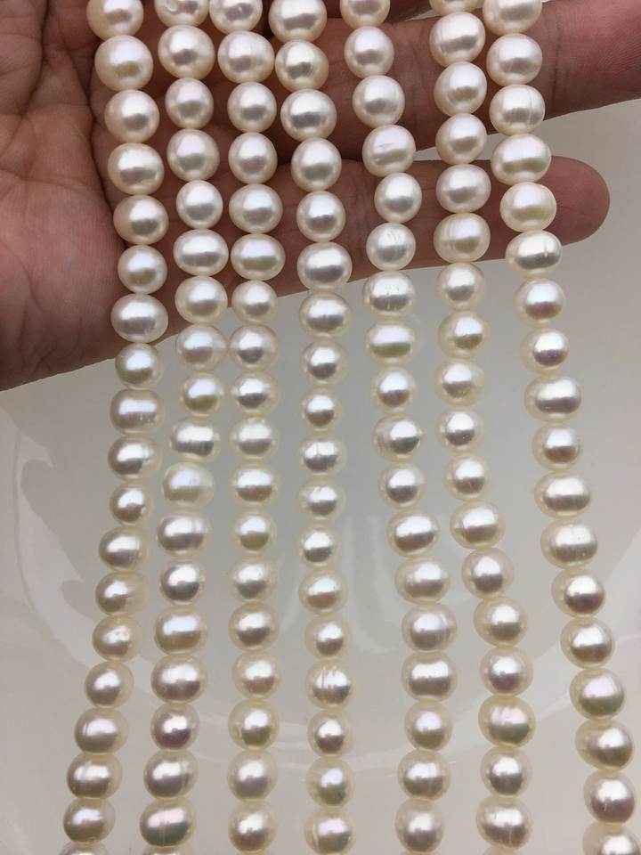ไข่มุกน้ำจืดสีขาวธรรมชาติ AA Plus ขนาด 6-7 มม. รูปทรงมันฝรั่ง เงางาม คุณภาพสูง ร้อยเป็นเส้น สำหรับทำเครื่องประดับ ขายส่งจำนวนมาก กำลังเป็นที่นิยม