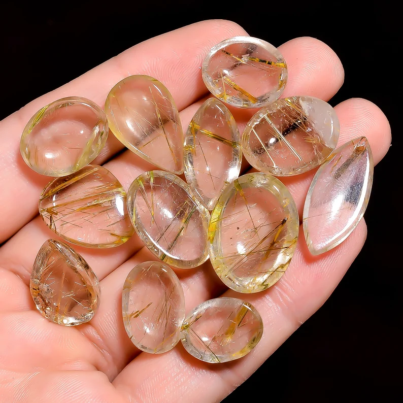 AA + หินควอตซ์เจียระไนรูปไข่รูปวงรีขัดเงาสีทอง12ชิ้นวัสดุธรรมชาติสำหรับอัญมณีหลวม