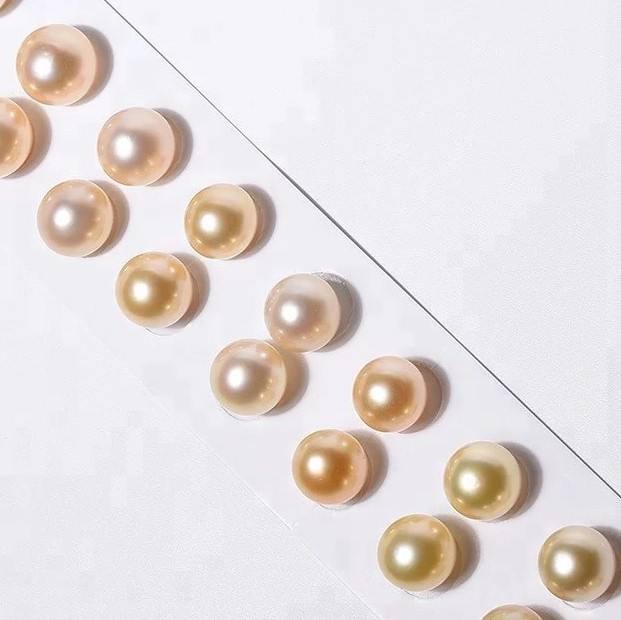 AA ลูกปัดมุกทรงกลมน้ำทะเลสีทอง1คู่จากประเทศจีน