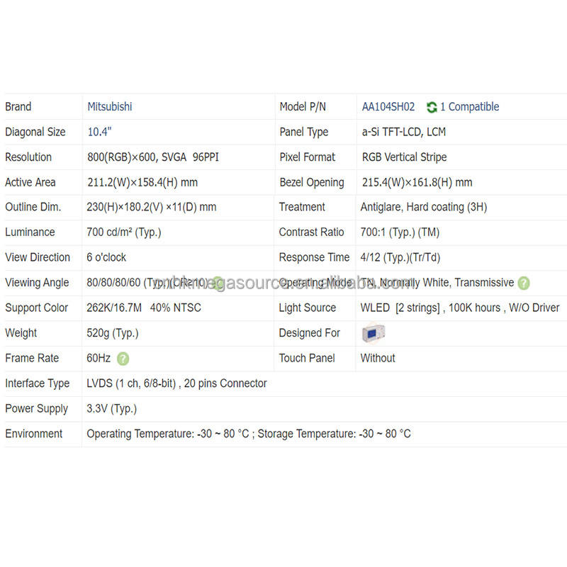 AA104SH02หน้าจอ10.4นิ้ว800*600จอแสดงผล LCD AA104SH02แผง LCD