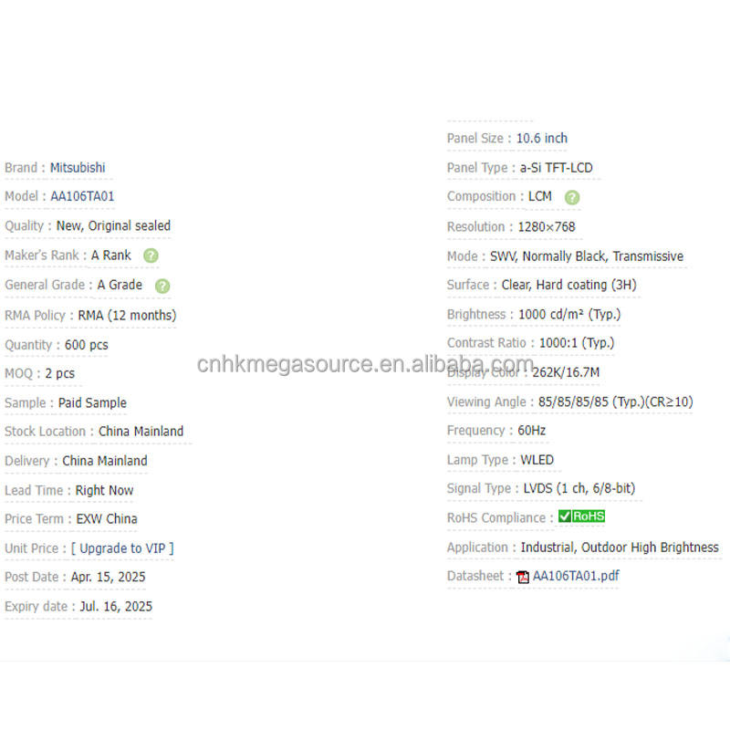 หมายเลขรุ่น: AA106TA01-DA1