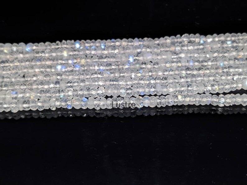 ลูกปัดพลอยมูนสโตน AAA + 12นิ้วทำมือยาว3เส้น4มม. ลูกปัดหินสีฉูดฉาดสีฟ้าธรรมชาติ