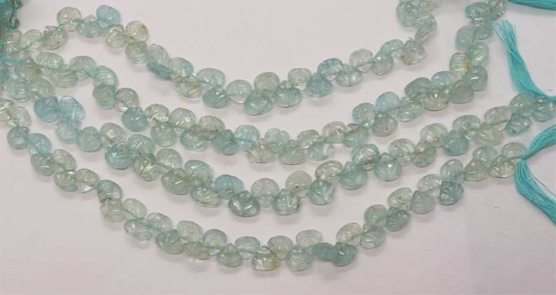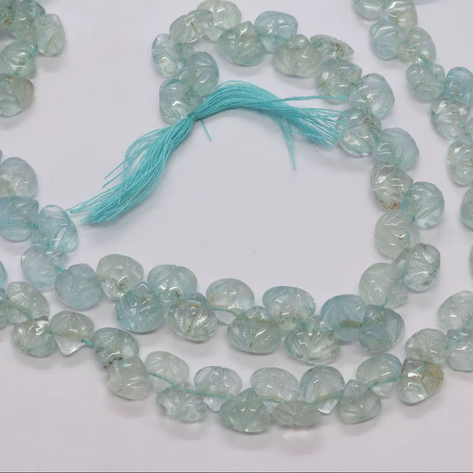 ลูกปัดหัวใจแกะสลักมือจากอความารีนธรรมชาติ