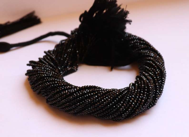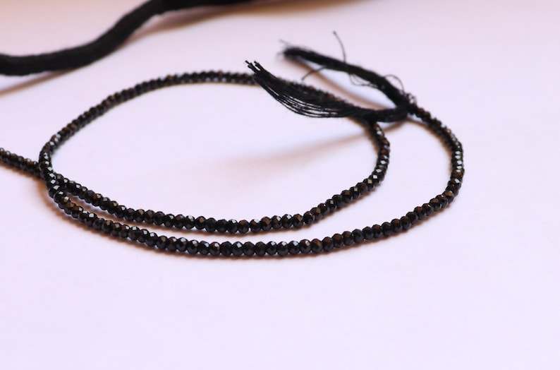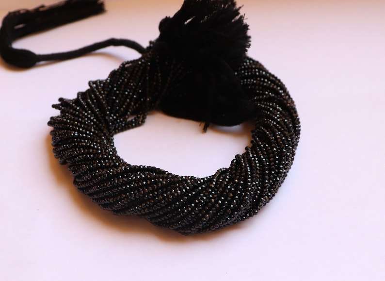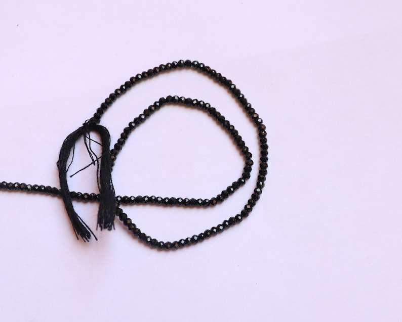 ลูกปัดทรงรอนเดลล์สีดำสปิเนลแบบเจียระไน AAA 10 เส้น ขนาด 2-2.5 มม. ลูกปัดทรงรอนเดลล์พลอยสปิเนลสีดำธรรมชาติ 13 นิ้ว สำหรับทำเครื่องประดับ