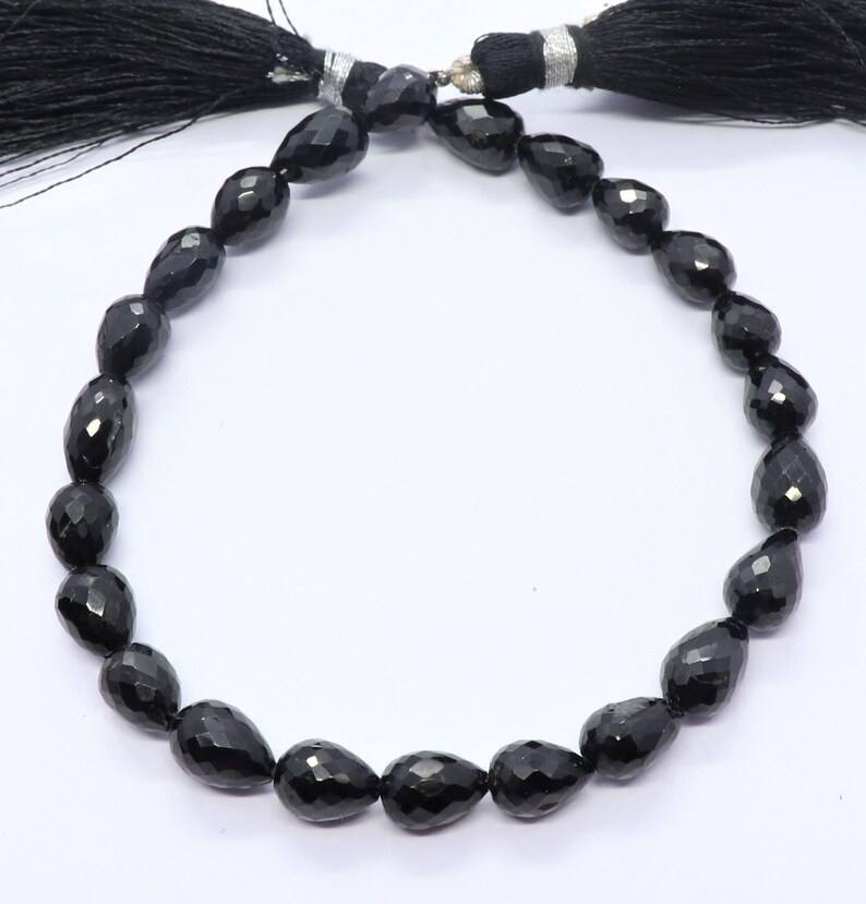 ลูกปัดทรงหยดน้ำสีดำสปิเนลเจียระไนแบบตรง ขนาด 5x7 มม. ลูกปัดพลอยสปิเนลสีดำทรงหยดน้ำ 7 นิ้ว ลูกปัดสปิเนลสีดำแบบหลวมสำหรับทำเครื่องประดับ