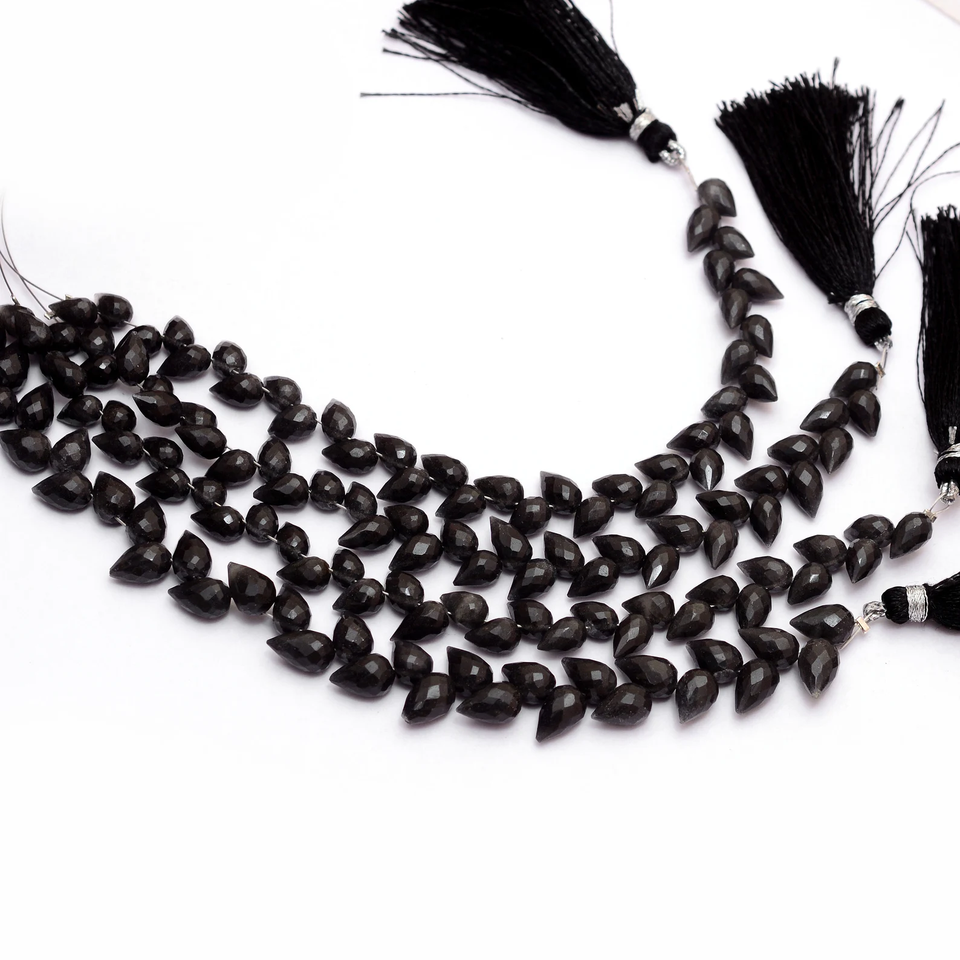 ดอกทิวลิปขนาด6x9มม. สีดำประดับลูกปัดอัญมณีลูกปัด Briolette ในแนวทแยงเจาะเหลี่ยมลูกปัดแฟนซีสำหรับเครื่องประดับ