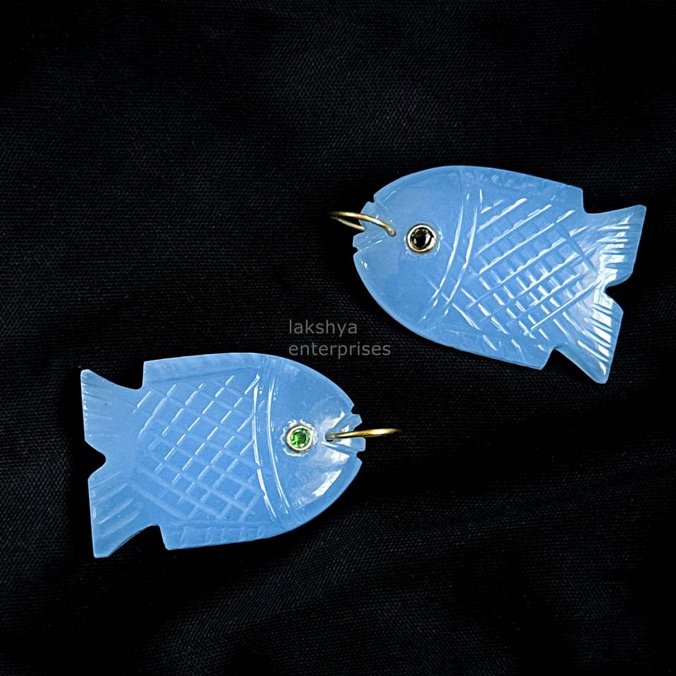 Product name:Natural Blue Chalcedony Fish Pendant Charms