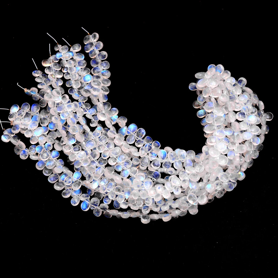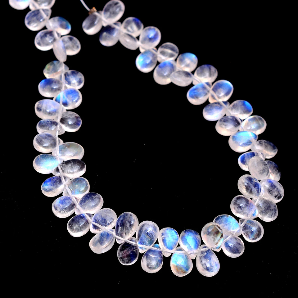 พลอยมูนสโตน AAA พลอยสีฟ้าเป็นลูกแพร์แบบเรียบ6x4mm-7x5mm อัญมณีสีรุ้งธรรมชาติสีขาวเหมาะสำหรับเป็นเครื่องประดับ