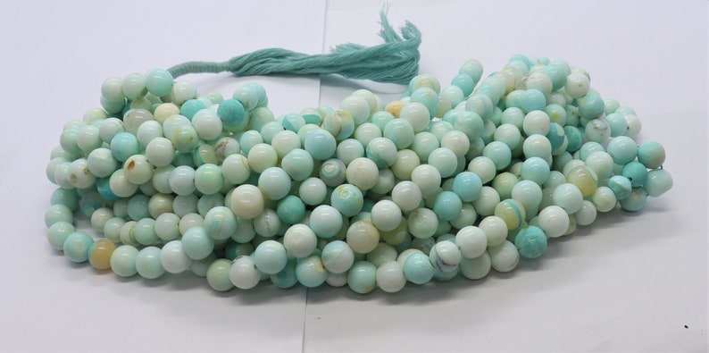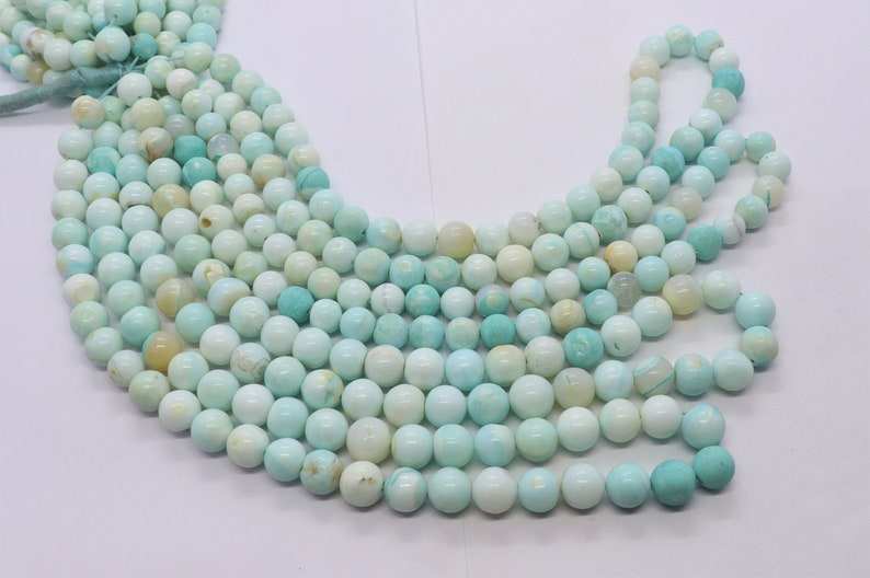 ลูกปัดโอปอลเปรูสีฟ้าธรรมชาติ ทรงกลมเรียบ
