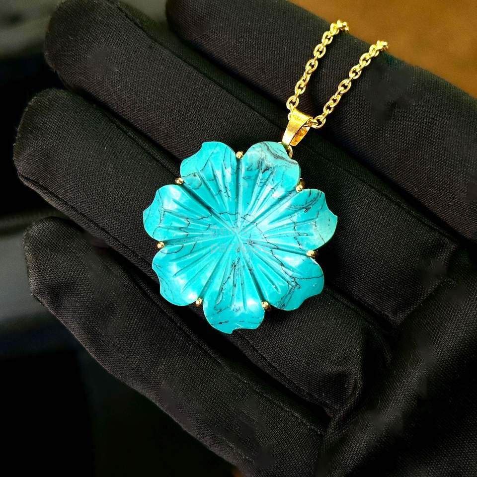 Gemstone Name:AAA Blue Turquoise Flower Charm Pendant