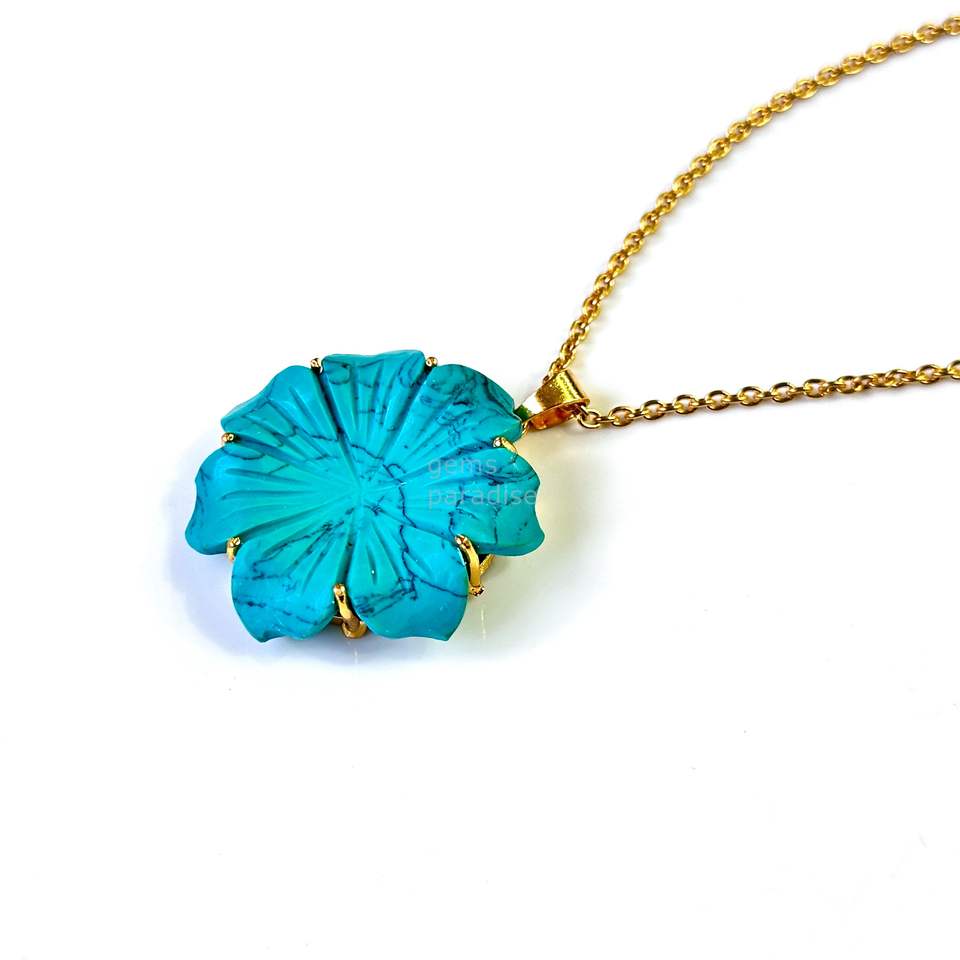 AAA Blue Turquoise Flower Charm Pendant Necklace For Women Hand Carved AAA Turquoise Gemstone Crystal Floral Pendant Wholesale