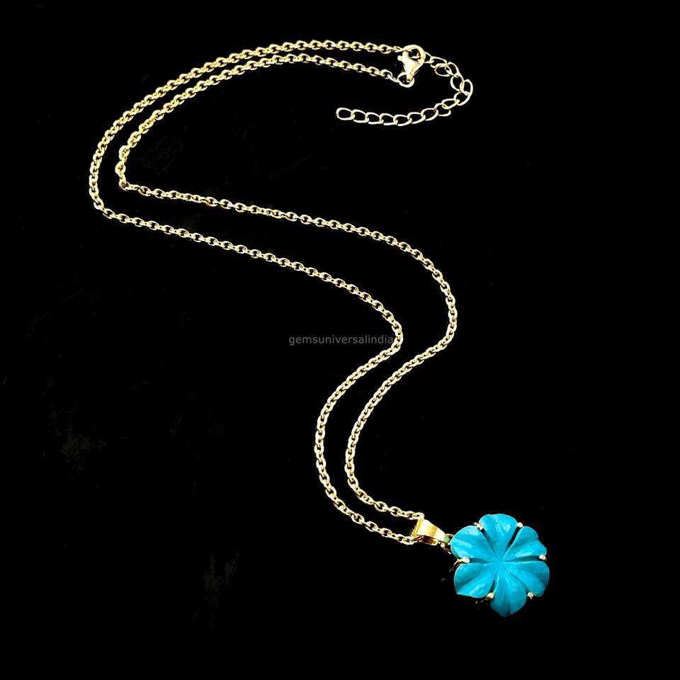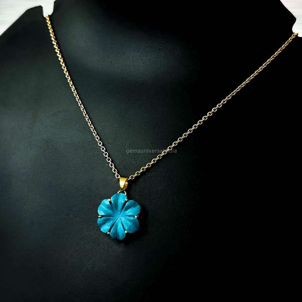 AAA สีฟ้าเทอร์ควอยซ์จี้รูปดอกไม้เทอร์ควอยซ์แกะสลักอัญมณีสร้อยคอสำหรับผู้หญิงของขวัญวันเกิดแฟชั่นเครื่องประดับขายส่ง