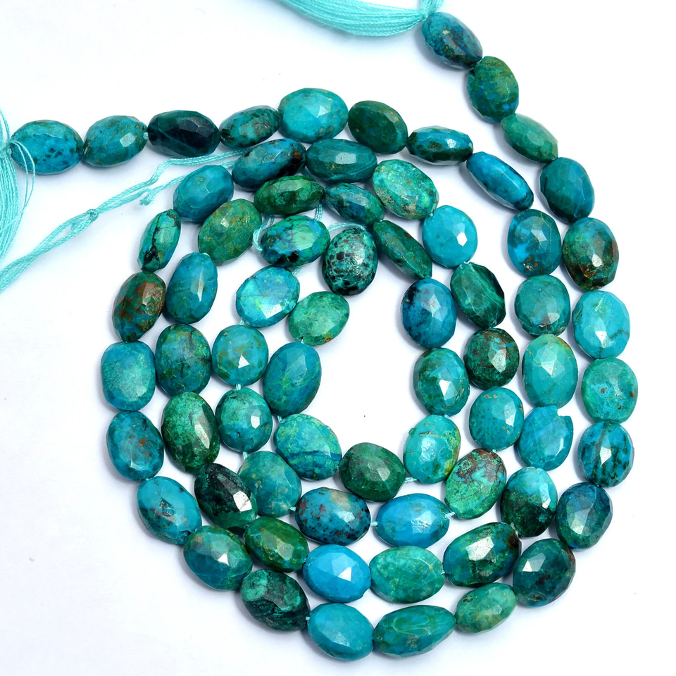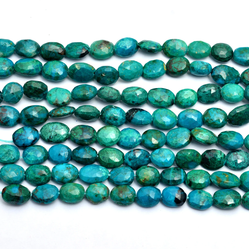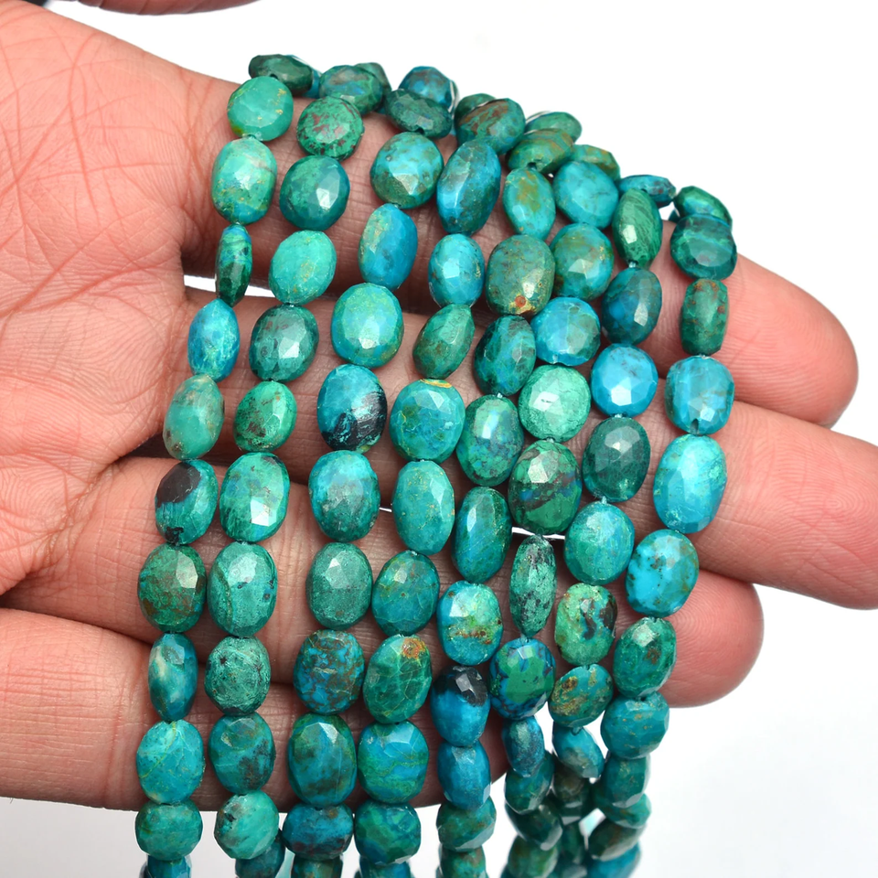 ลูกปัดทรงรีเหลี่ยมเพชรพลอยคริสโซโคล่าขนาด8x10มม. AAA พลอยรูปวงรีสังเคราะห์จากธรรมชาติลูกปัดทรงรีสำหรับการทำเครื่องประดับ