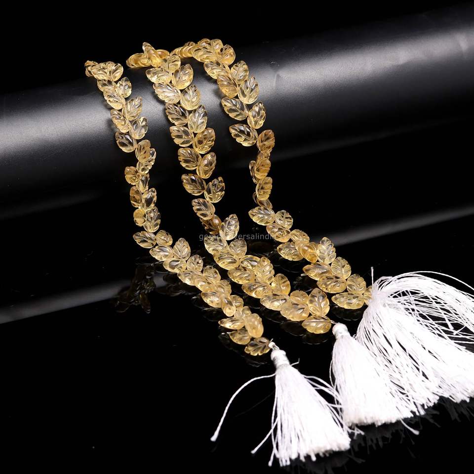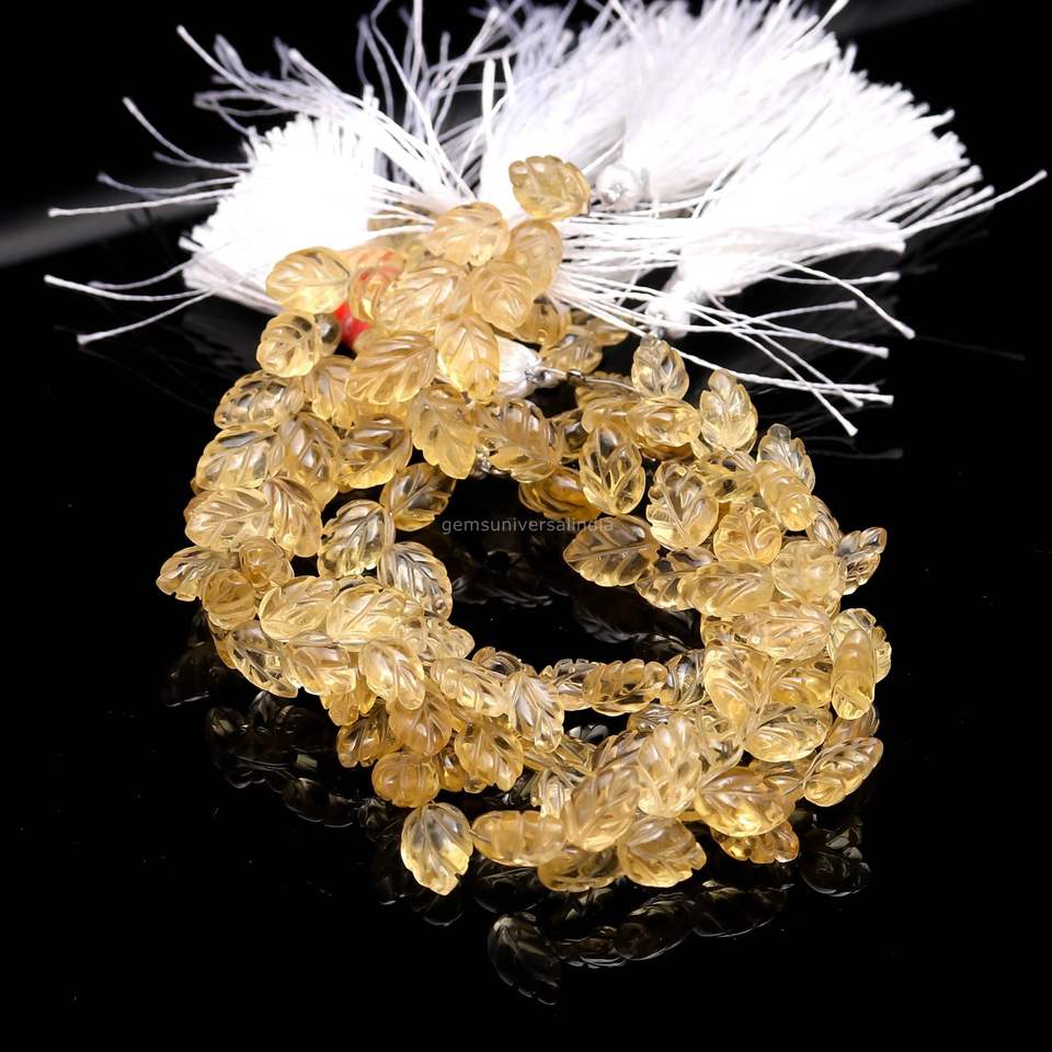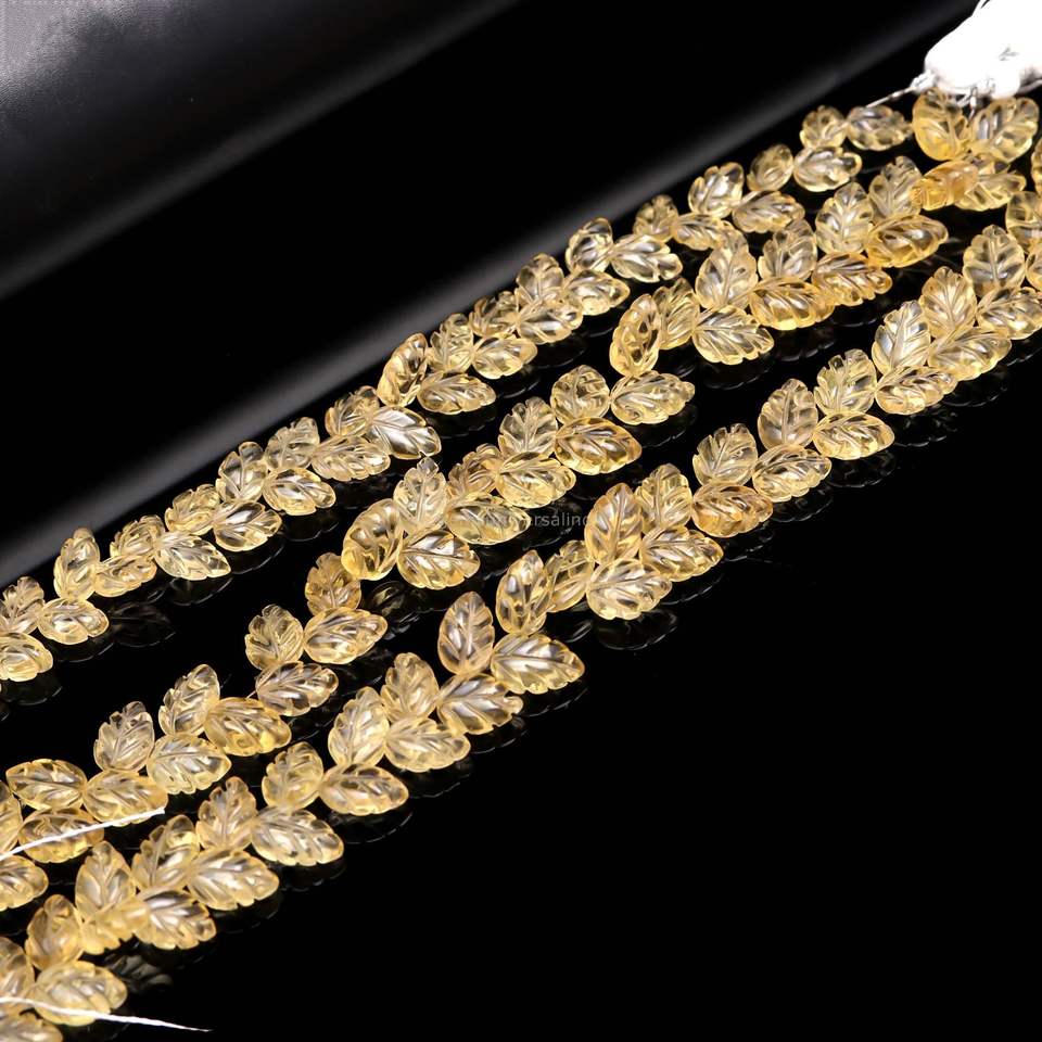 ลูกปัดพลอยซิทรินรูปใบไม้แกะสลักด้วยมือ ขนาด 10-11 มม. ลูกปัดซิทรินธรรมชาติสำหรับทำเครื่องประดับ ความยาว 8 นิ้ว