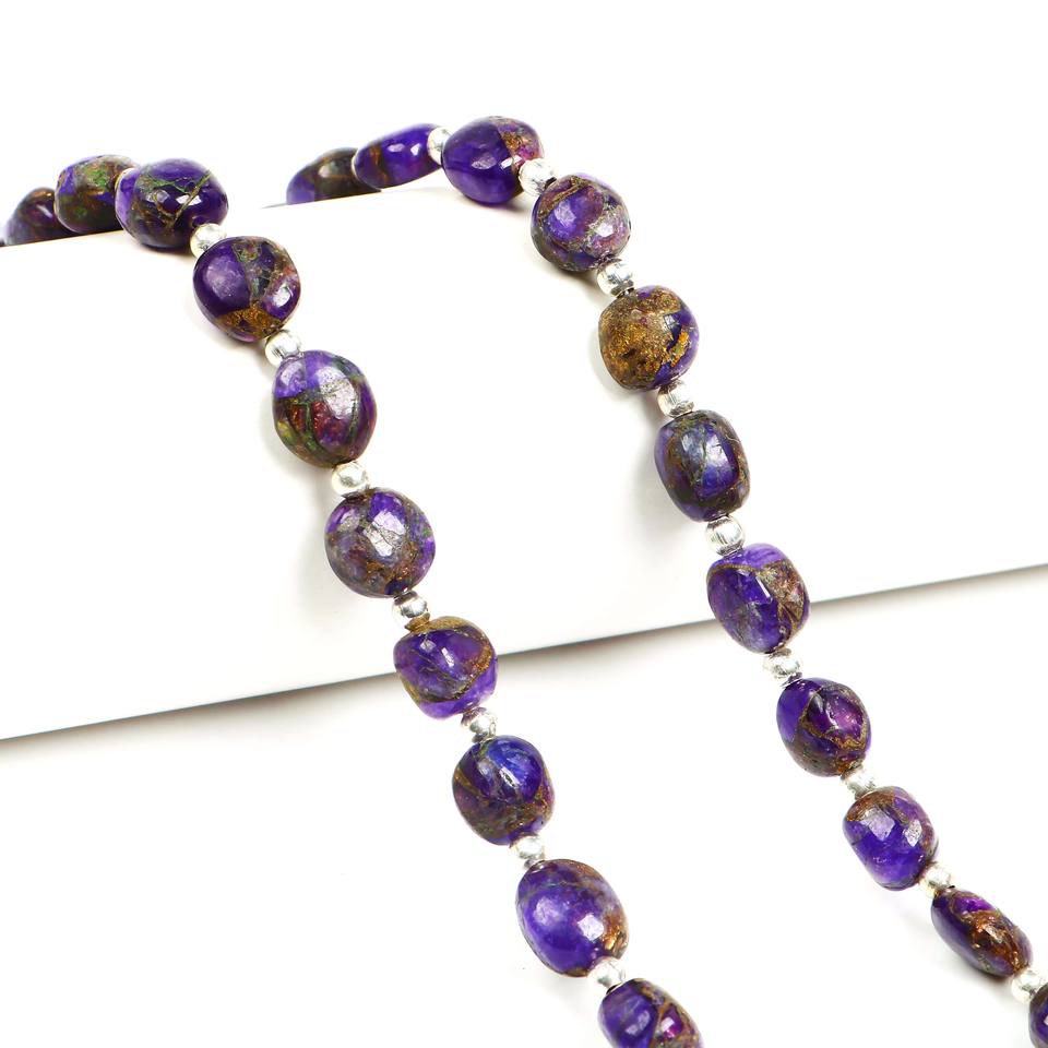 ลูกปัดทองแดงอะเมทิสต์ ลูกปัดอะเมทิสต์ทองแดงเทอร์ควอยซ์ทรงก้อน ขนาด 6x8 ถึง 8x10 มม. ลูกปัดพลอยหลวมสำหรับทำเครื่องประดับ 8 นิ้ว