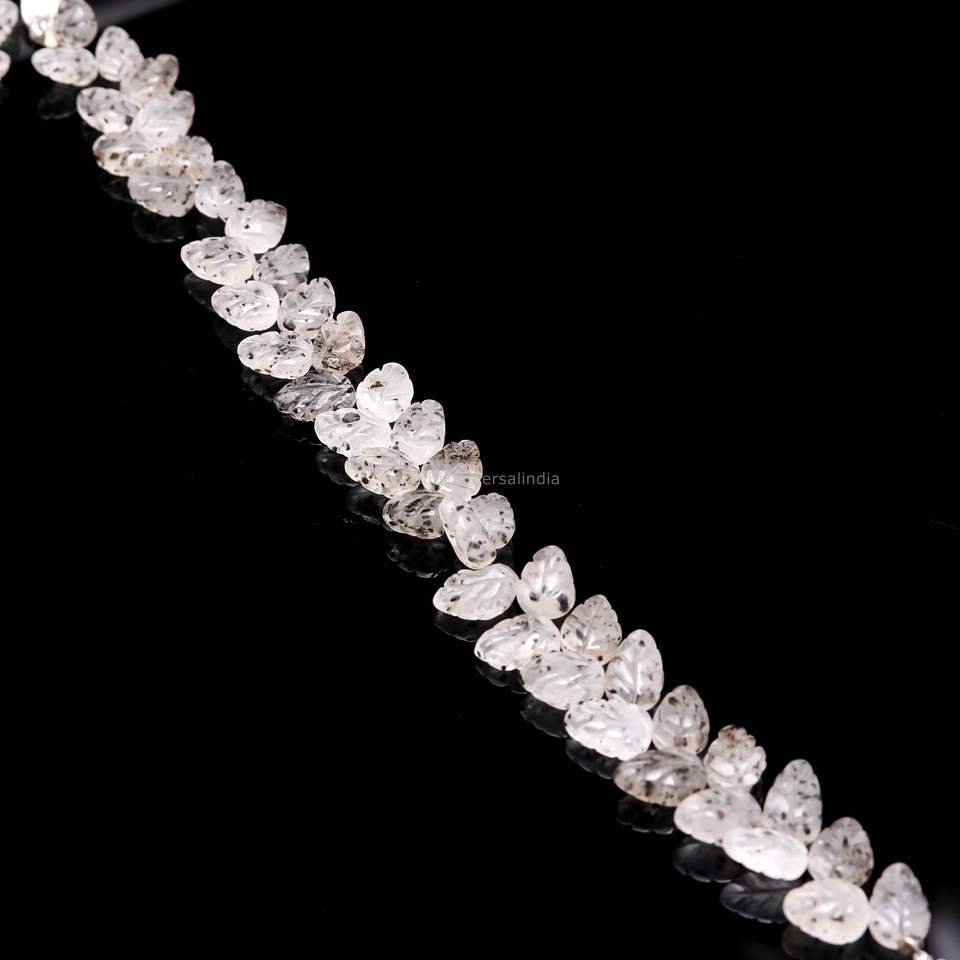 ลูกปัดหินควอตซ์ลายจุดธรรมชาติ แกะสลักรูปทรงใบไม้