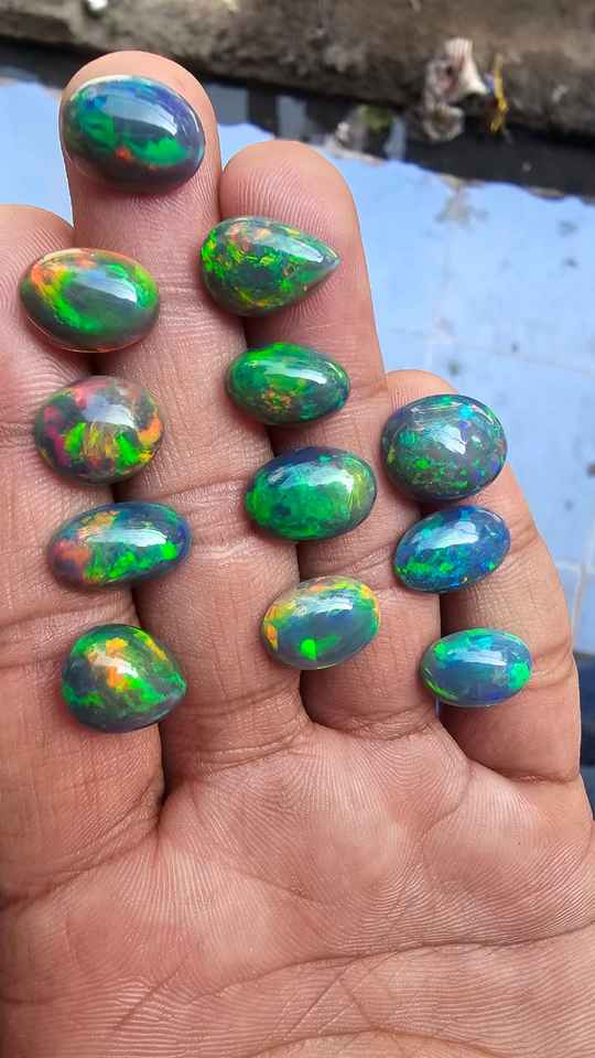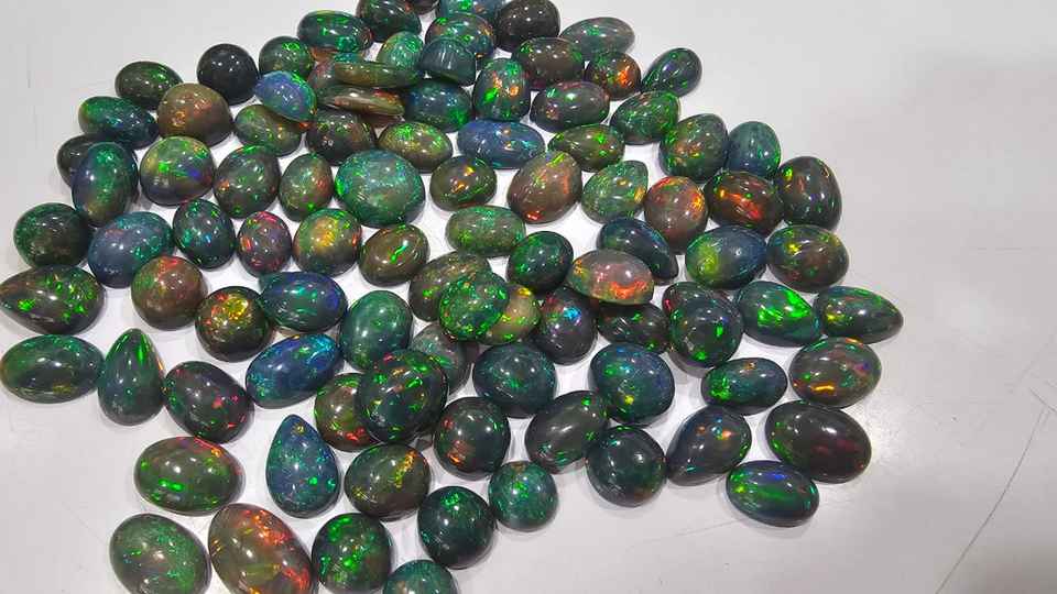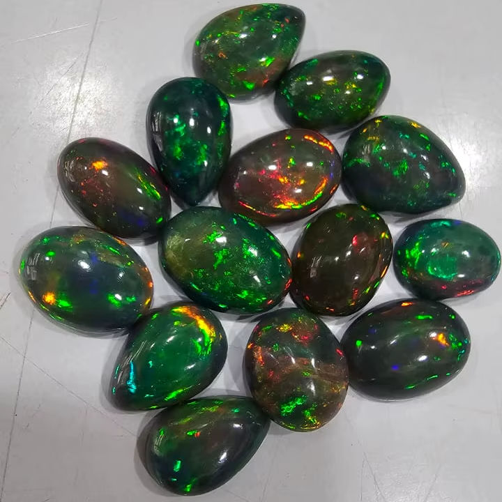 โอปอลดำเอธิโอเปีย AAA หลายสี รูปทรงคาโบชอง คละแบบ พลอยหลวม คุณภาพดีจากธรรมชาติ สำหรับทำเครื่องประดับ ราคาขายส่ง H GEMS