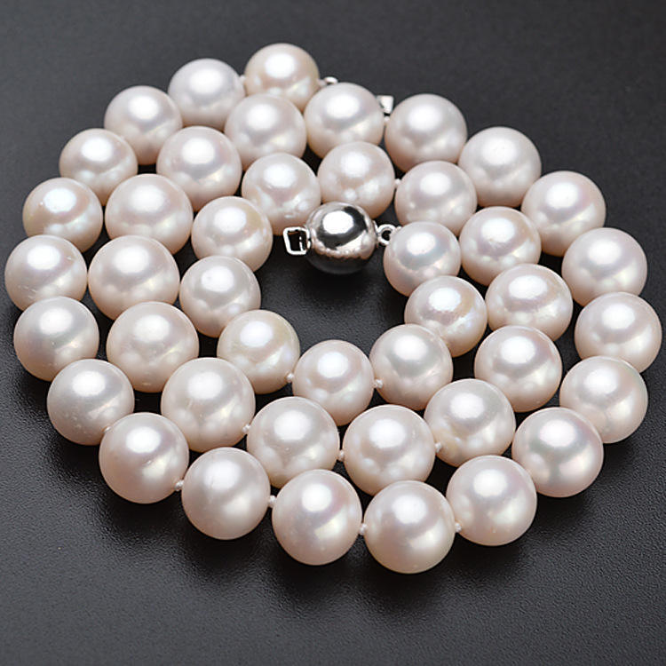 สร้อยคอมุกน้ำจืดเกรด AAA ขนาด 10-11 มม. ทรงเกือบกลม มีตำหนิเล็กน้อย-มุกจูจี้ แสงเงาสวยงาม ขายตรงจากโรงงาน