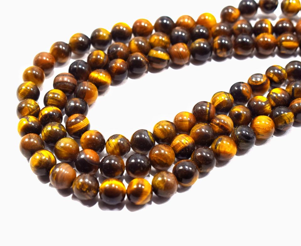 ลูกปัดตาเสืออินเดียขนาด48/15นิ้วสีเหลืองสีดำขนาด8มม. เกรด AAA