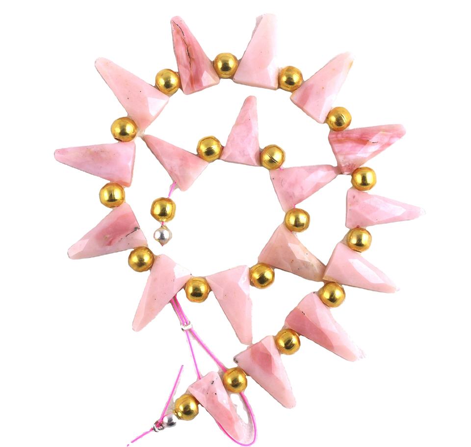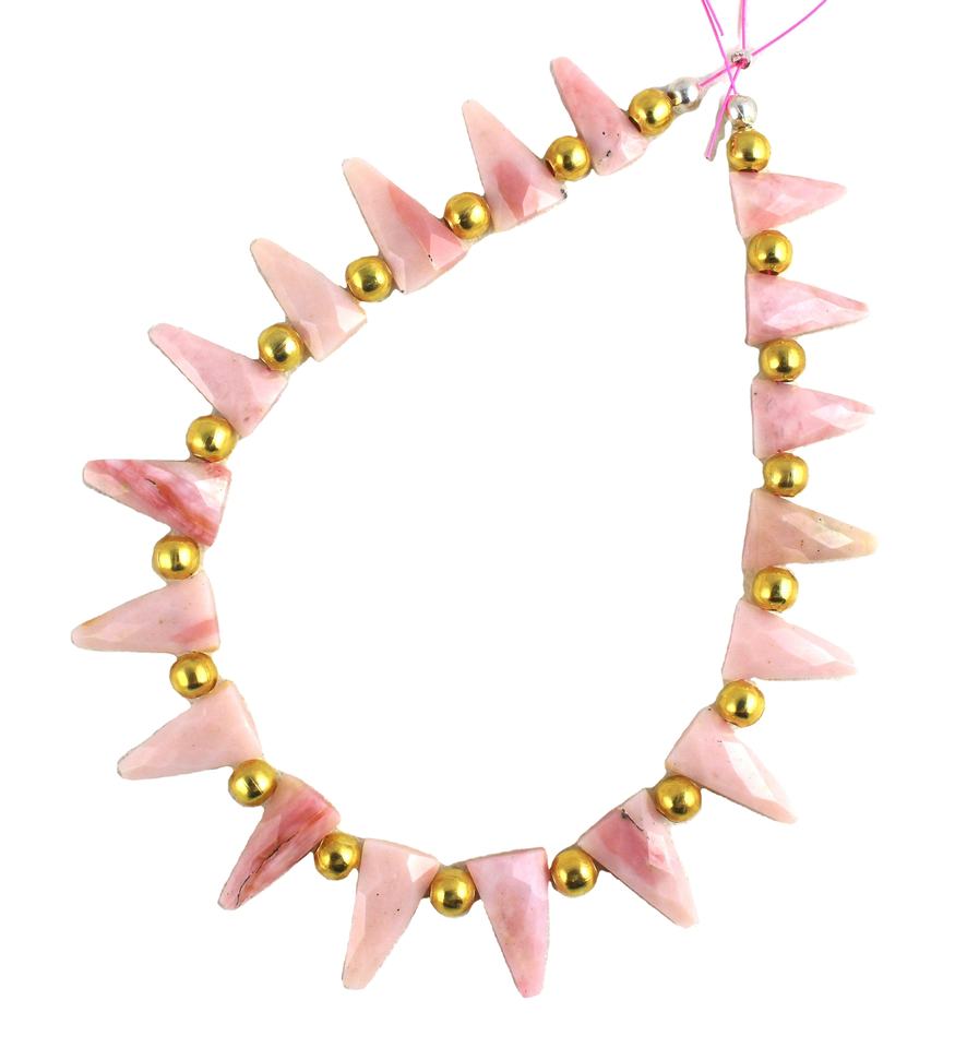 ลูกปัดโอปอลอัญมณีสีชมพูทรงสามเหลี่ยมเจียระไนเกรด AAA ลูกปัดพลอยบริโอเลตต์ธรรมชาติสีชมพูสำหรับการผลิตเครื่องประดับขายส่ง