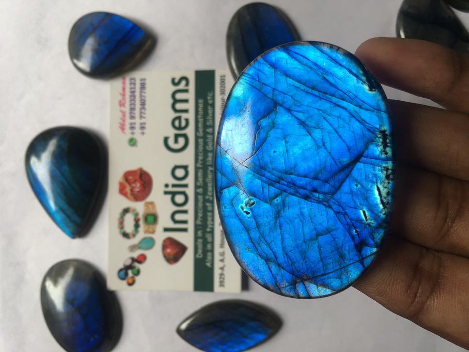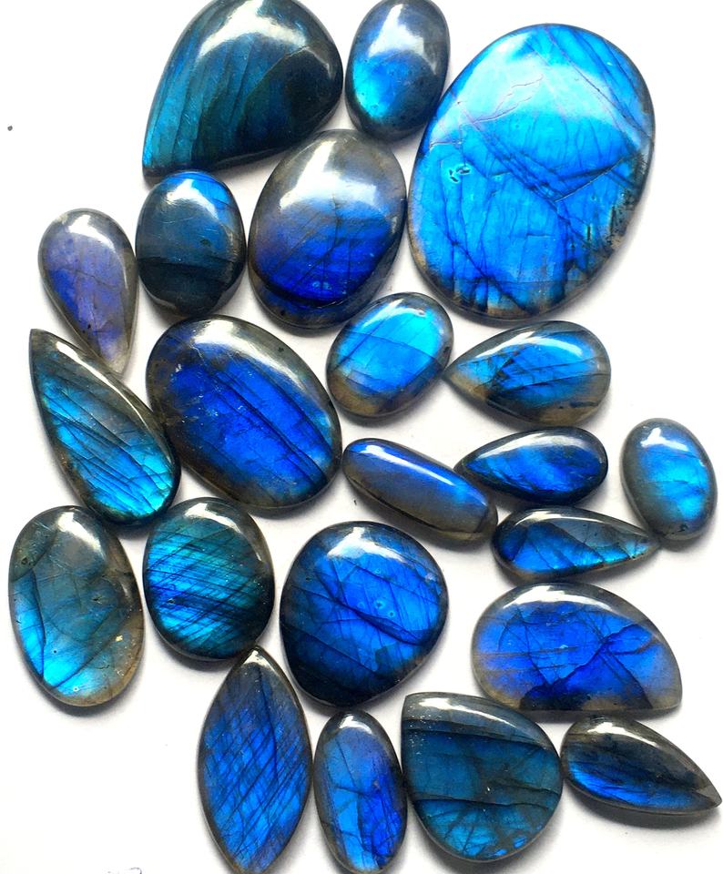 เกรด AAA อัญมณีทรงหลวมขัดทรงกลมทรงลูกแพร์สีไฟแวววาวสีฟ้าลาบราดอไรต์ธรรมชาติสูง