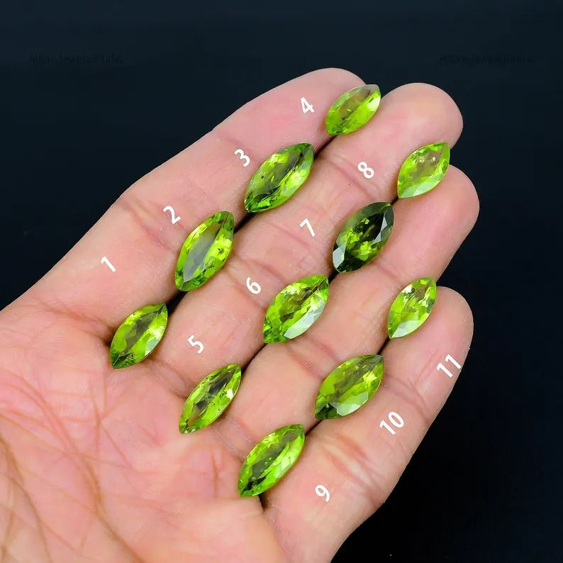 พลอยเพอริดอทดีไซน์มาร์คีส์ เกรด AAA สีเขียวธรรมชาติ เจียระไนอย่างประณีต รับรองโดยผู้เชี่ยวชาญภายนอก น้ำหนัก 1-3 กะรัต สำหรับทำเครื่องประดับแบบเม็ดเดี่ยว