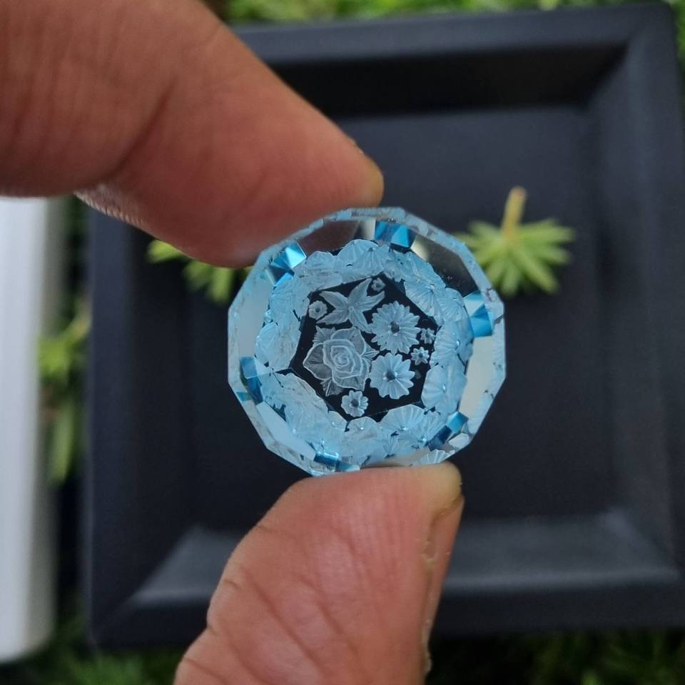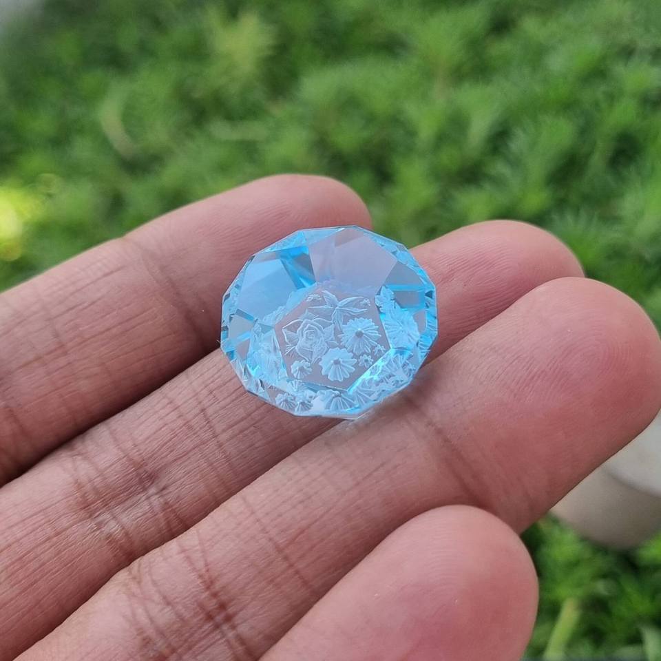 พลอยบุษราคัมสีฟ้าเกรด AAA อัญมณีทรงหกเหลี่ยมแกะสลักแบบหลวมอัญมณีสำหรับผู้ชายเครื่องประดับได้รับการรับรองจากร้าน IGI