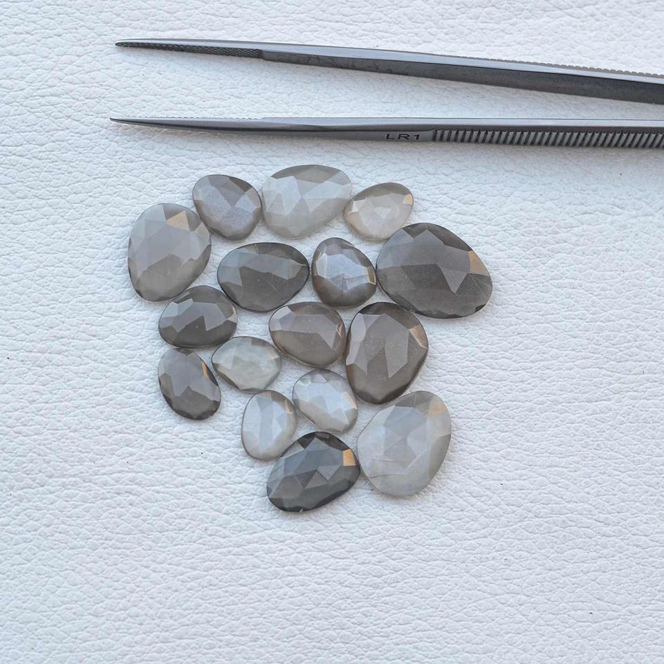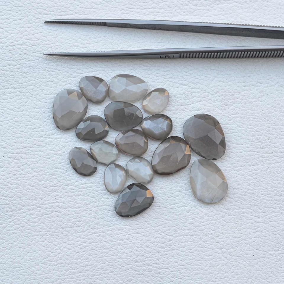 มูนสโตนสีเทาธรรมชาติเกรด AAA ขนาด 8 มม.-10 มม. รูปทรงโรสคัท พลอยเจียระไนทรงหยดน้ำ ขนาดปรับเทียบได้ ไม่มีตำหนิ เครื่องประดับทำมือ