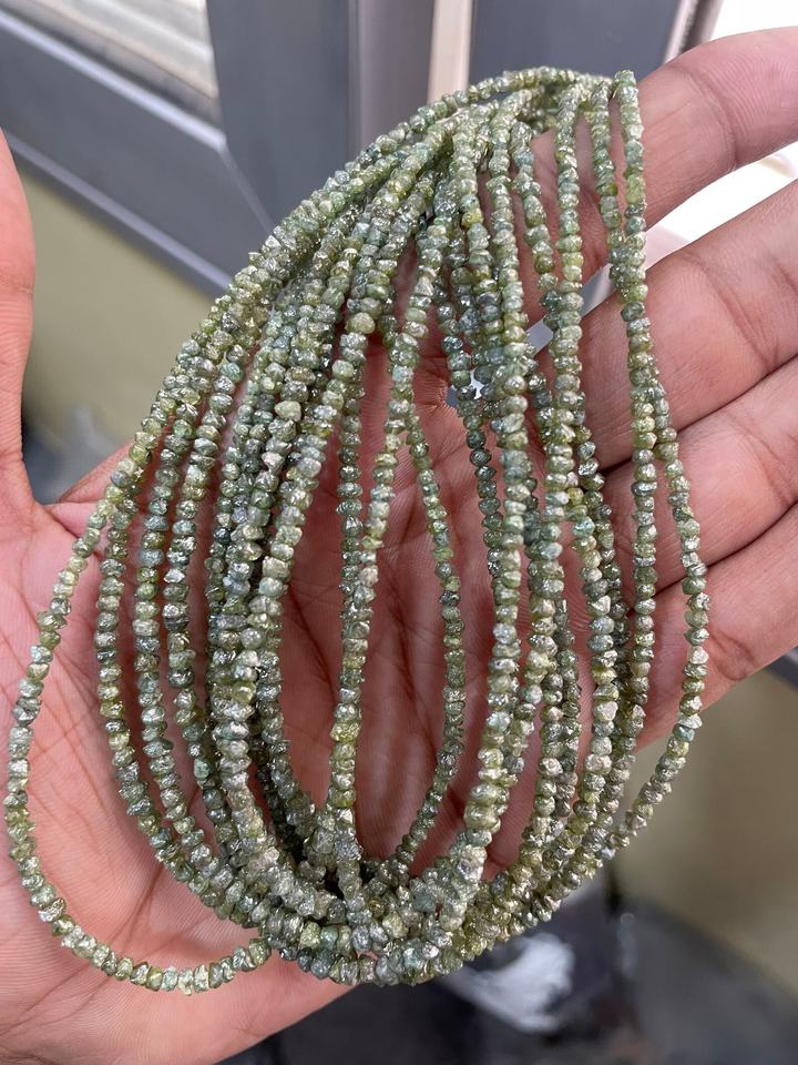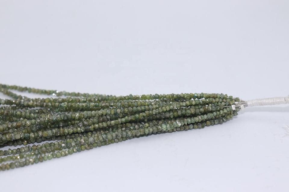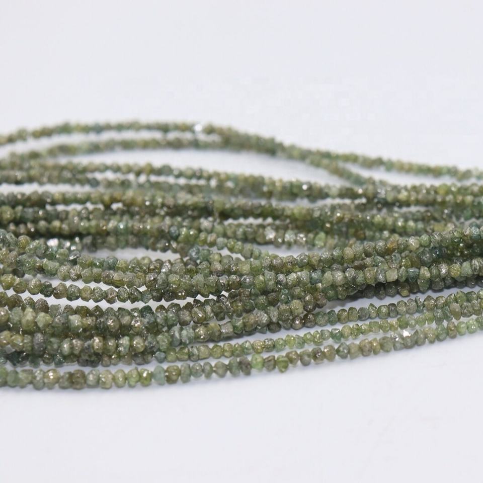เพชรธรรมชาติเกรด AAA สีเขียว ไม่เจียระไน ขนาด 3 มม. ร้อยเป็นเส้นยาว 16 นิ้ว สำหรับทำเครื่องประดับ จี้ สร้อยข้อมือ ต่างหู