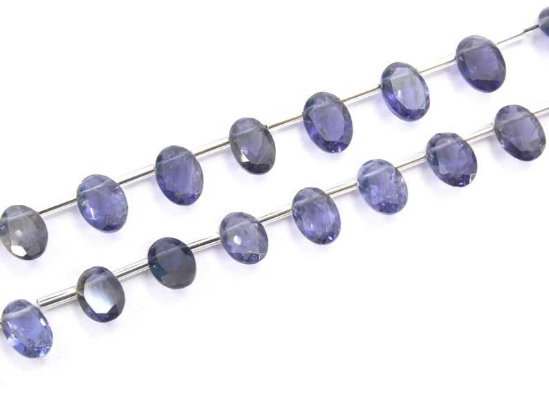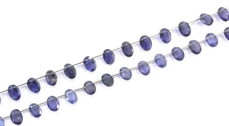 หินไอโอไลต์ธรรมชาติเกรด AAA ลูกปัด Briolette ทรงไข่เหลี่ยมเพชรพลอยสีฟ้าทำด้วยมือเครื่องประดับขายส่ง