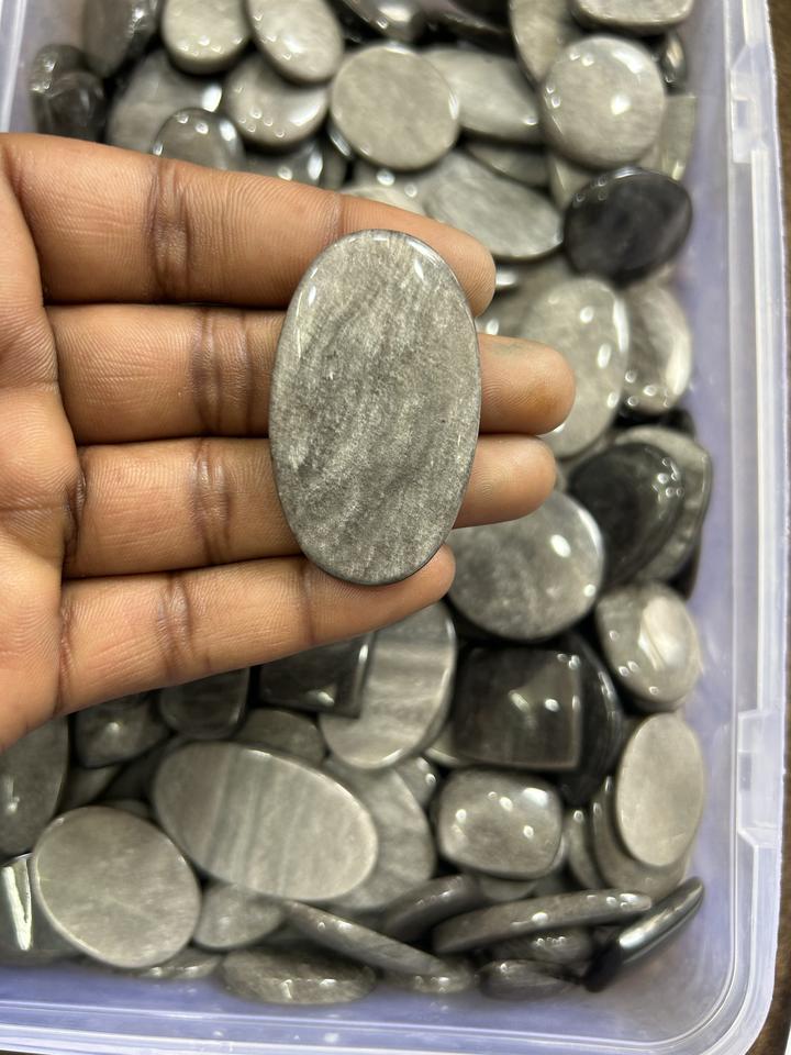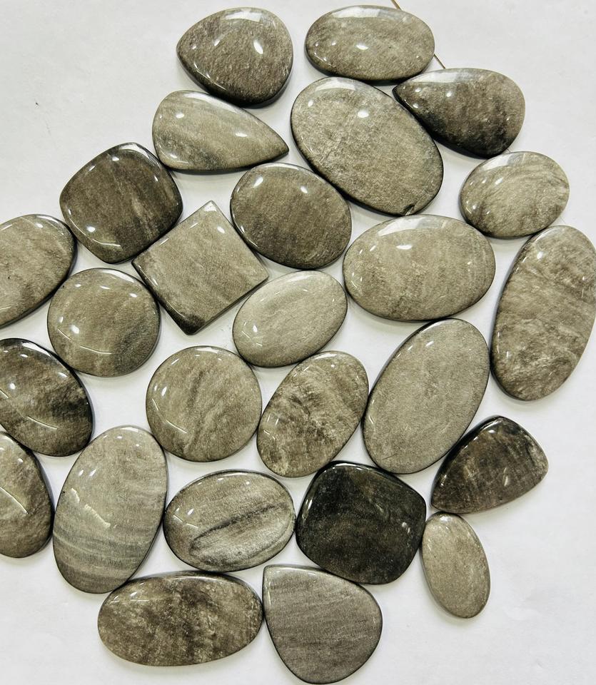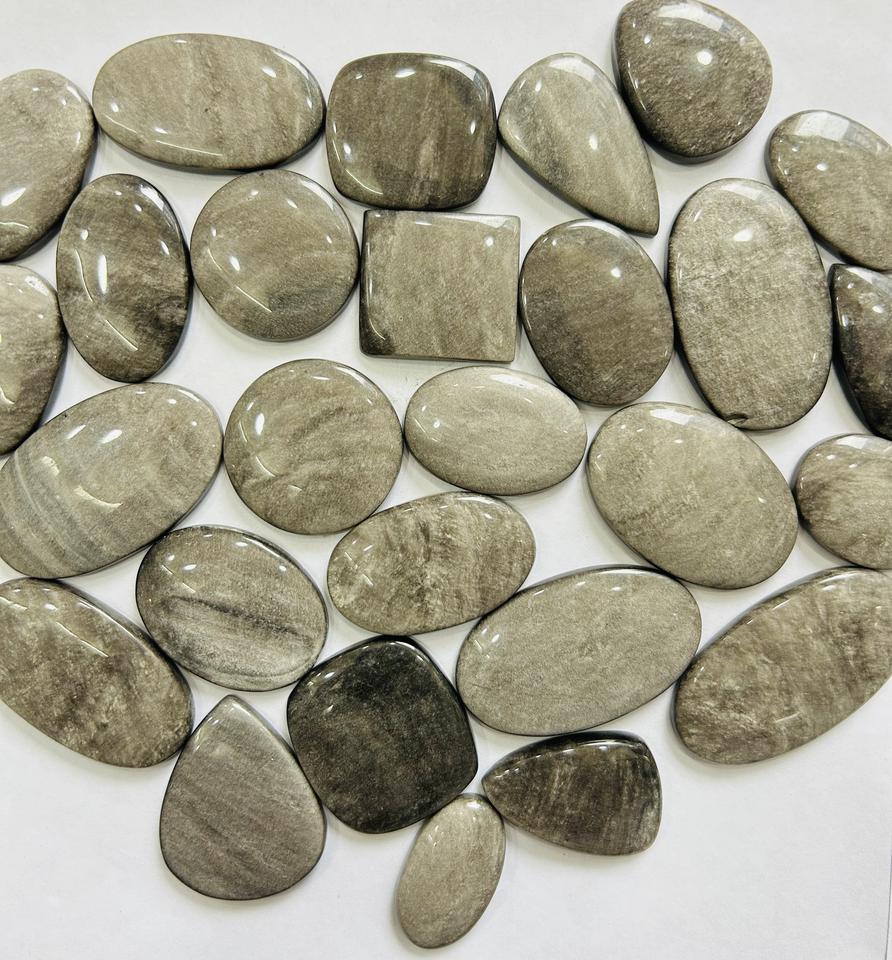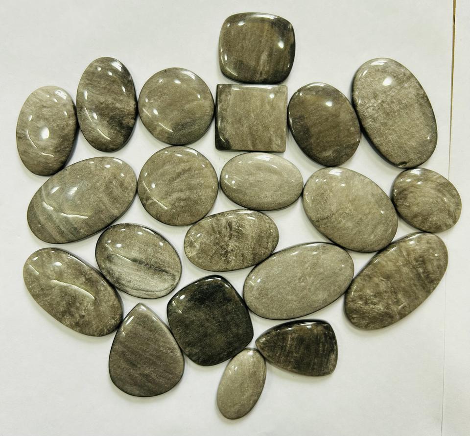 เกรด AAA หินสีเงินเงาแบบออบซิเดียนอัญมณีออบซิเดียนหินอัญมณีทำพลอยรูปทรงผสมหินออบซิเดียน