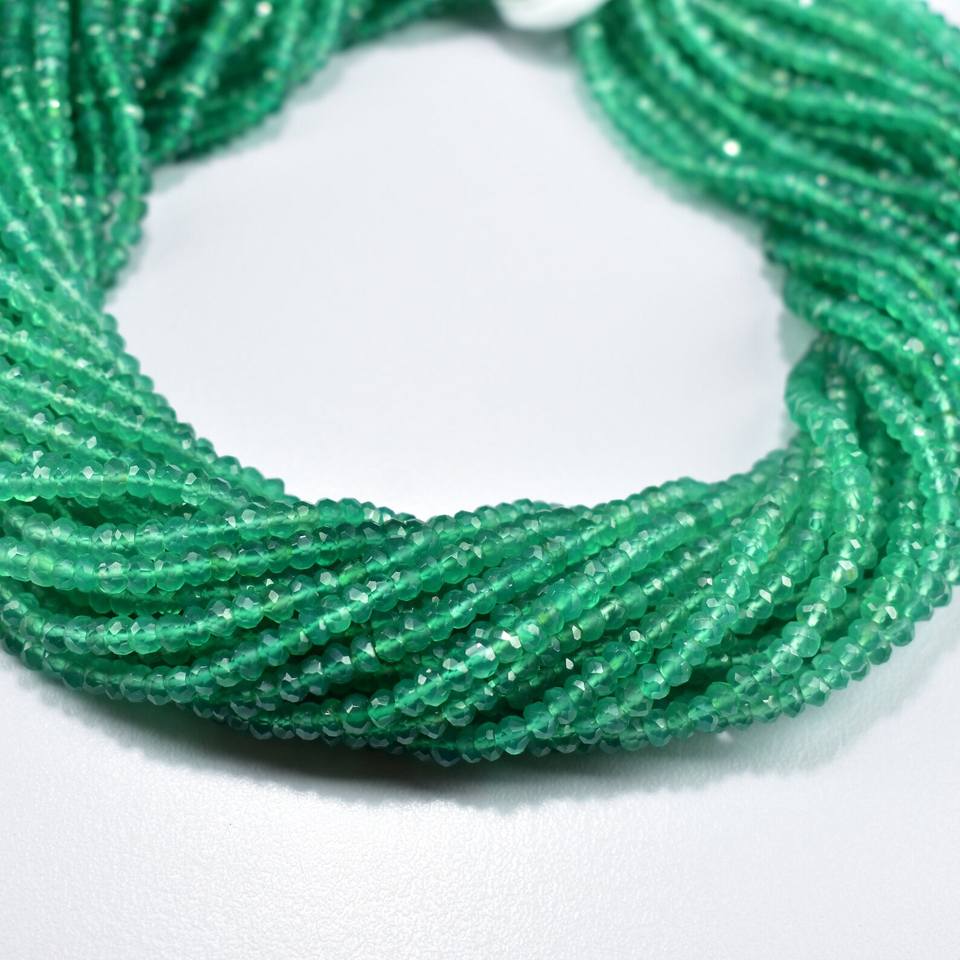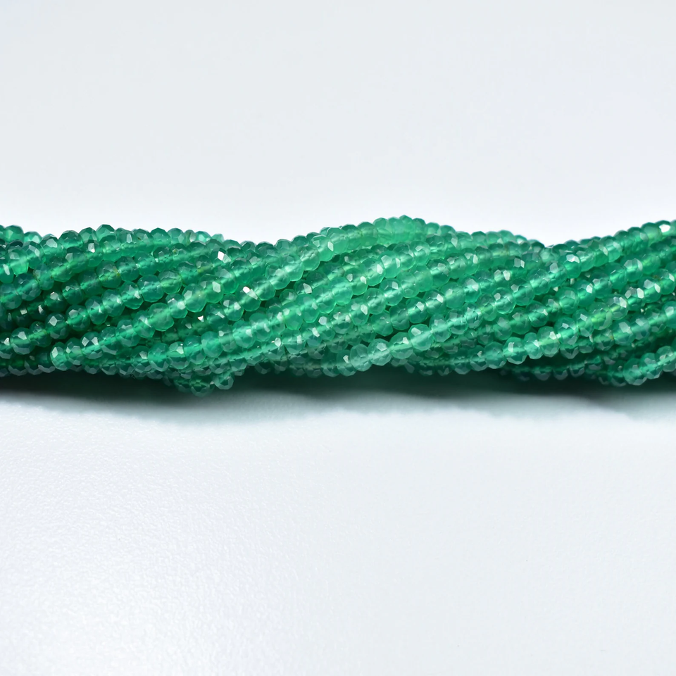 ลูกปัดอัญมณีธรรมชาติขนาด3.5มม. สีเขียวโอนิกซ์สีเขียวขนาด0.40มม. 13นิ้วสำหรับเครื่องประดับและงานฝีมือทำด้วยมือ