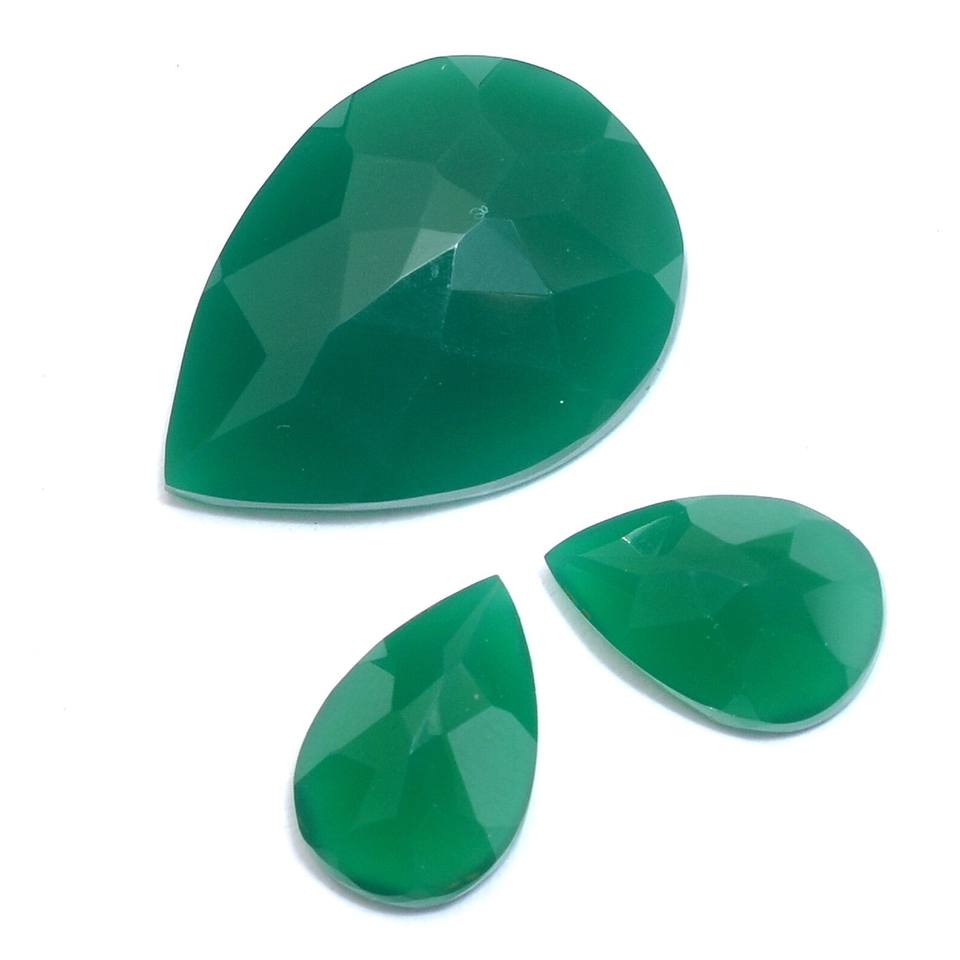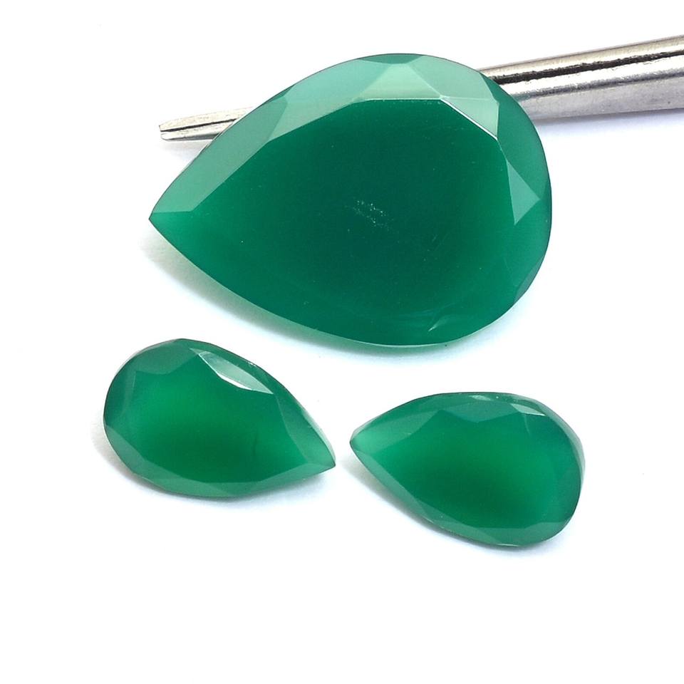 ชุดหิน9x14mm-17x22mm ลูกแพร์พลอยโอนิกซ์สีเขียว AAA ชุดอัญมณีเจียระไนแบบหลวมสีเขียวธรรมชาติสำหรับเครื่องประดับ