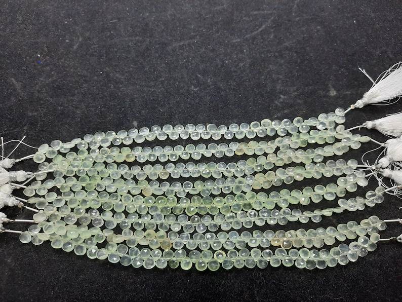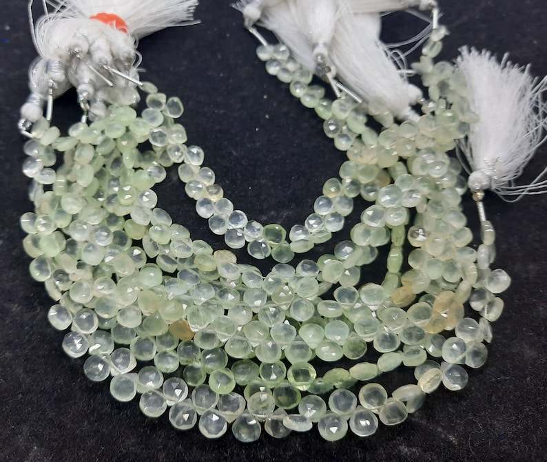 ลูกปัดเพรนไนต์สีเขียวทรงหัวใจเจียระไนขนาด 5.5-6 มม. ลูกปัดพลอยเพรนไนต์สีเขียวธรรมชาติทรงหัวใจ 8 นิ้ว ลูกปัดเพรนไนต์เจียระไน
