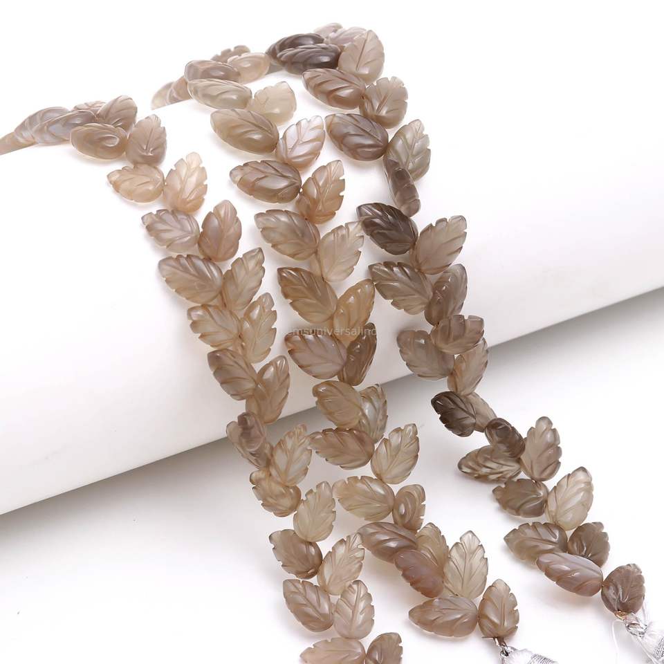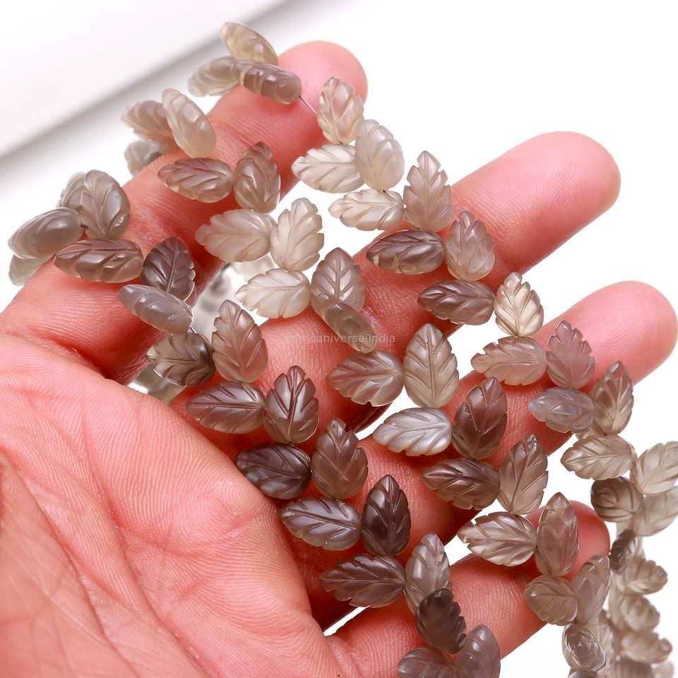 Natural Grey Moonstone Carved Leaf Shape Gemstone Beads