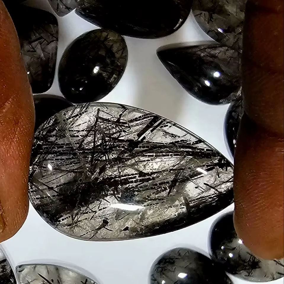 AAA H GEMS คริสตัลทัวร์มาลีนทรงลูกแพร์สีดำธรรมชาติสวยงาม แบบหลวมๆ ขนาดฟรีไซส์ พร้อมของแถม 20%