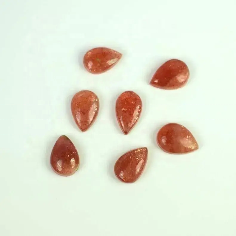 AAA พลอยอัญมณี100% ทรงหลวม5มม. x 8มม. ทำจากหินซันสโตนทรงหลังแบน