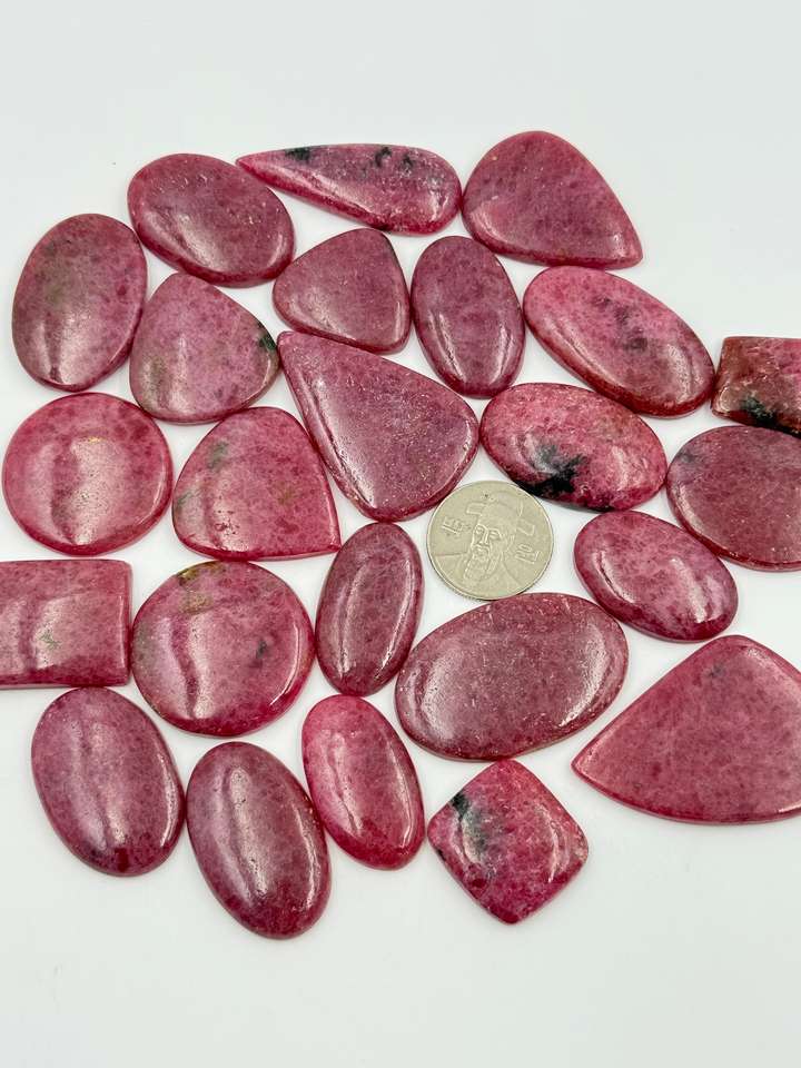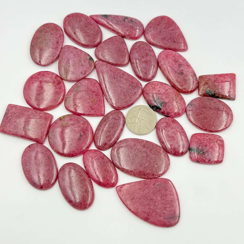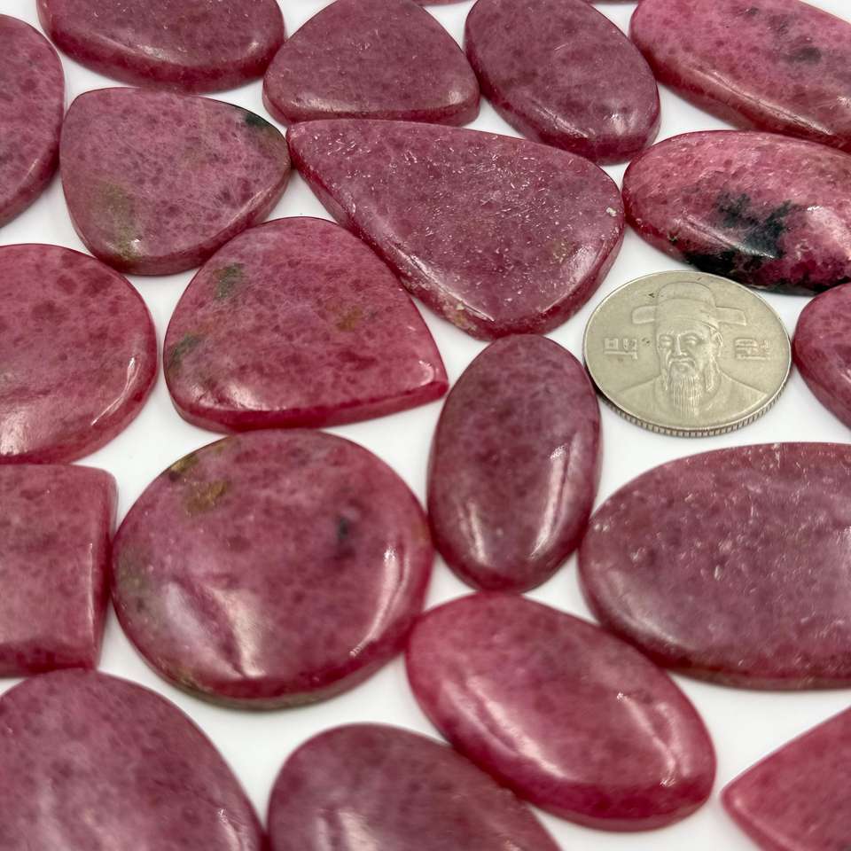 พลอยโรโดไนต์สีชมพูธรรมชาติ 100% คุณภาพสูง AAA+ รูปทรงและขนาดตามสั่ง จำหน่ายแบบหลวมสำหรับทำเครื่องประดับ