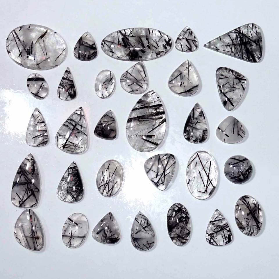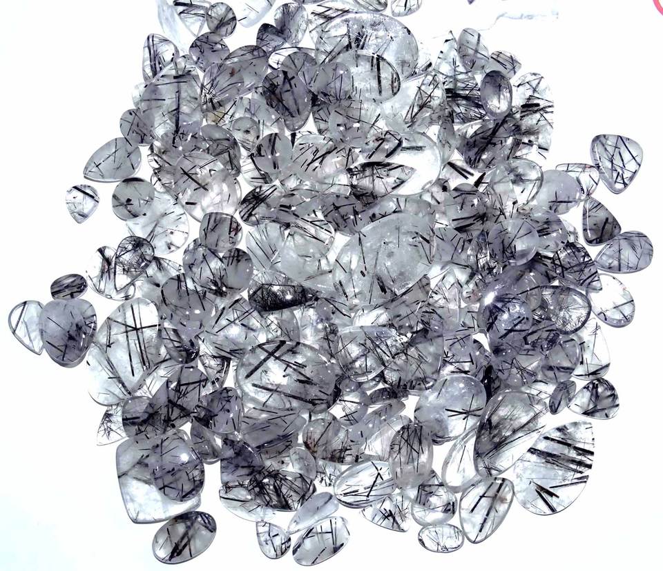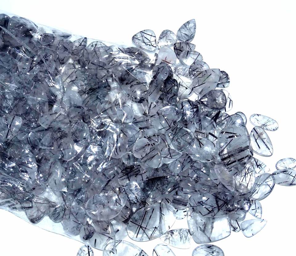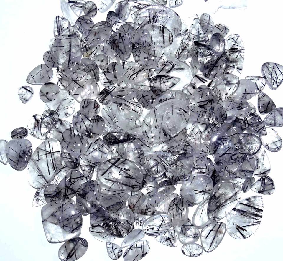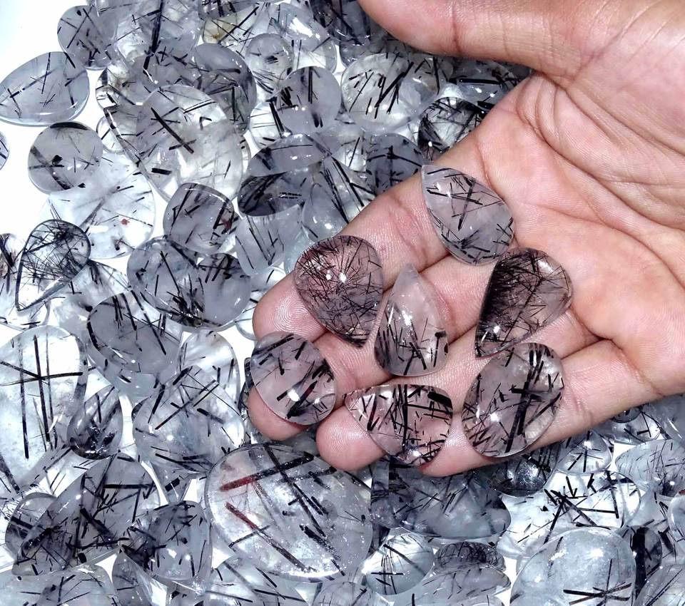 พลอยควอตซ์เจียระไนแบบแร่หลังเบี้ยสีดำธรรมชาติคุณภาพสูง AAA + อัญมณีทรงหลวมสำหรับการทำเครื่องประดับ