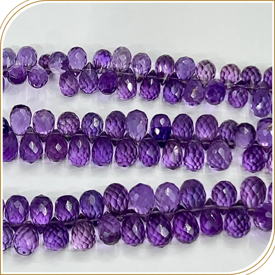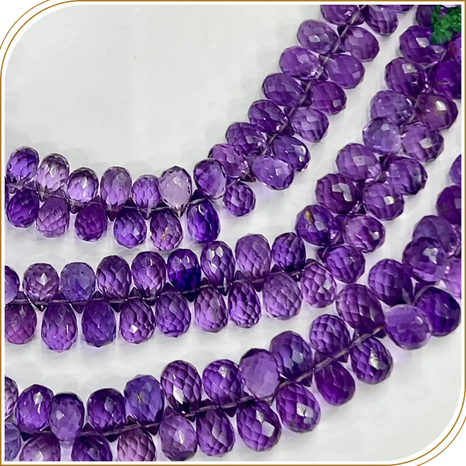 AAA พลอยควอตซ์พลอยสีชมพูเข้มธรรมชาติขนาด8นิ้วประมาณ5ถึง6มม.