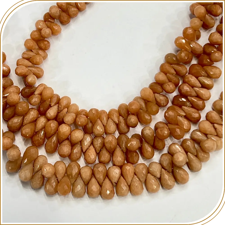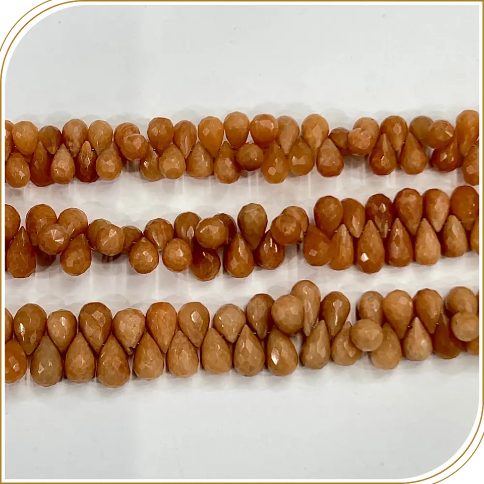คริสตัลสีส้มธรรมชาติคุณภาพสูงหยดน้ำตา Briolette ขนาด8นิ้วขนาดประมาณ5ถึง6มม.
