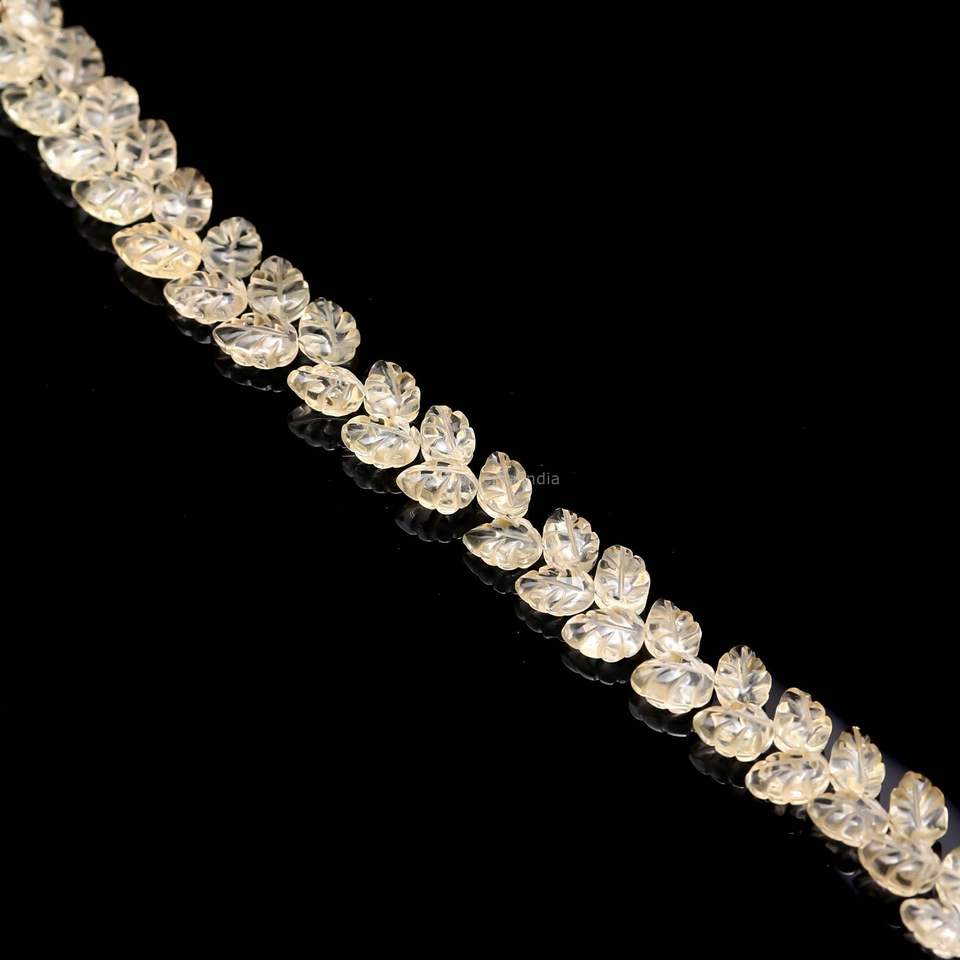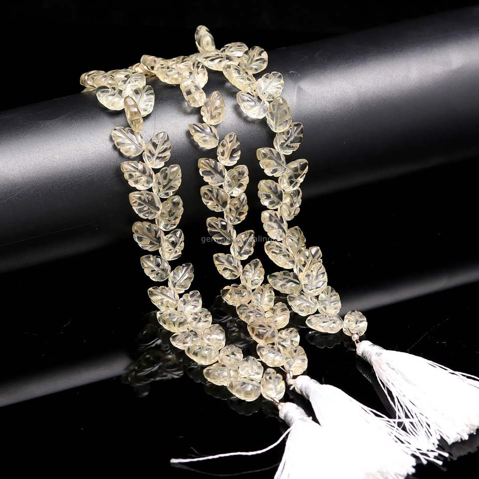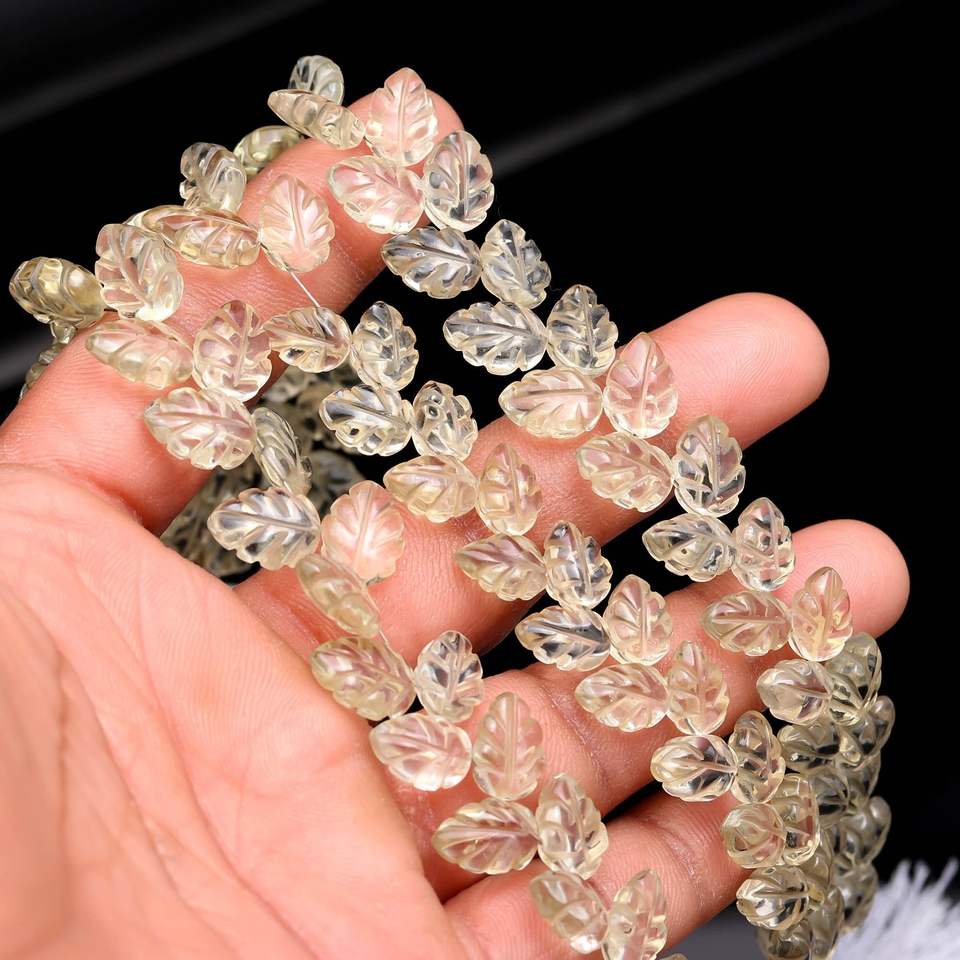 ลูกปัดหินควอตซ์สีเลมอนธรรมชาติ แกะสลักรูปทรงใบไม้