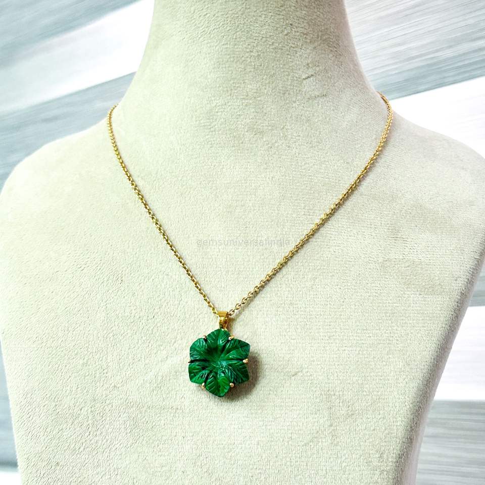 ชื่ออัญมณี:จี้ห้อยคอรูปดอกไม้มาลาไคต์ AAA