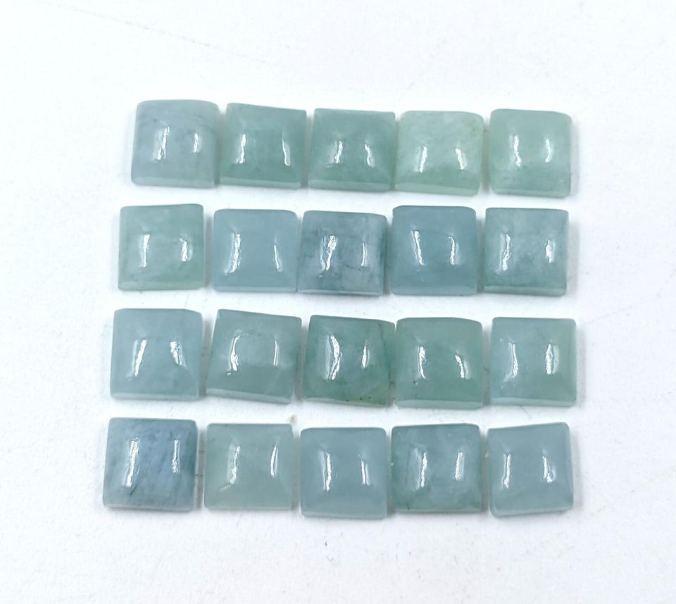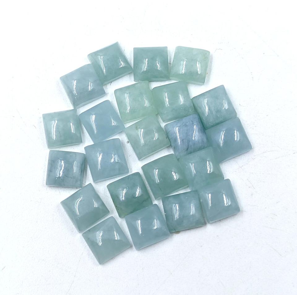 พลอยอะความารีนสีฟ้ามิลค์กี้บลูทรงเหลี่ยมแบบคาโบชอง ขนาด 6x6 มม. 8x8 มม. 10x10 มม. 12x12 มม. พลอยธรรมชาติ 100% สำหรับทำเครื่องประดับ