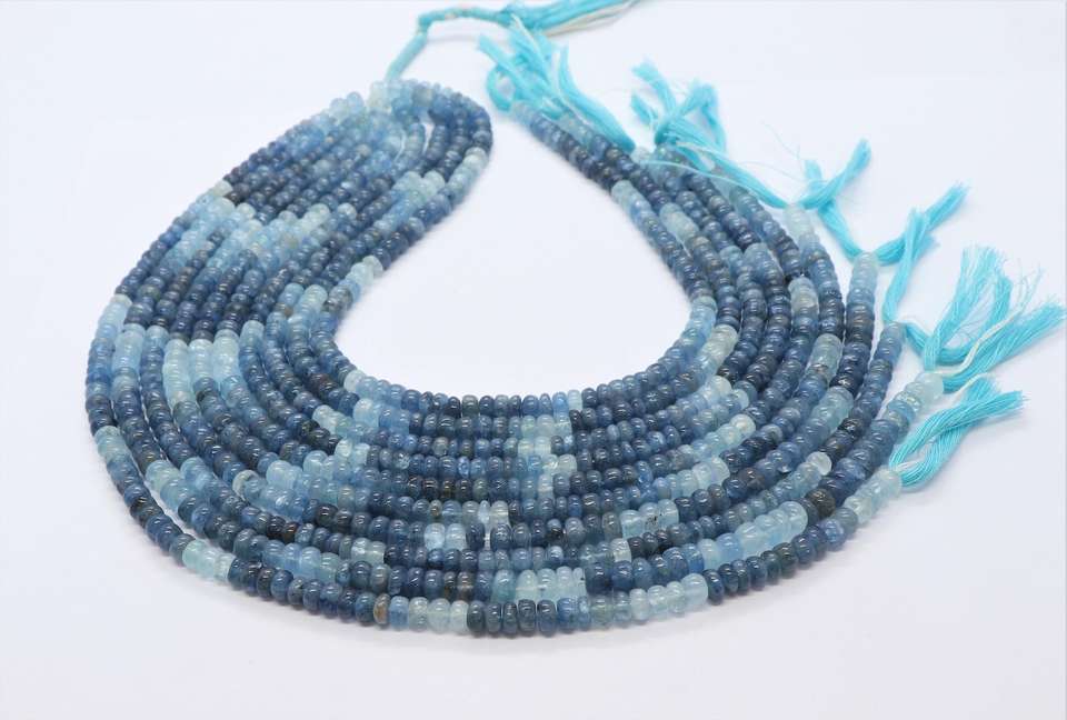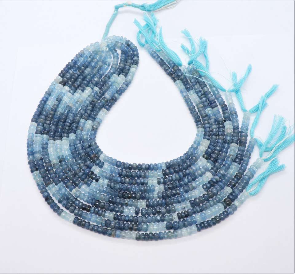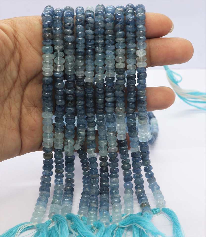 ลูกปัดมอสอะความารีนทรงรอนเดลล์เรียบขนาด 5-6 มม. สีมอสอะความารีนไล่เฉด ลูกปัดพลอยมอสอะความารีนธรรมชาติ