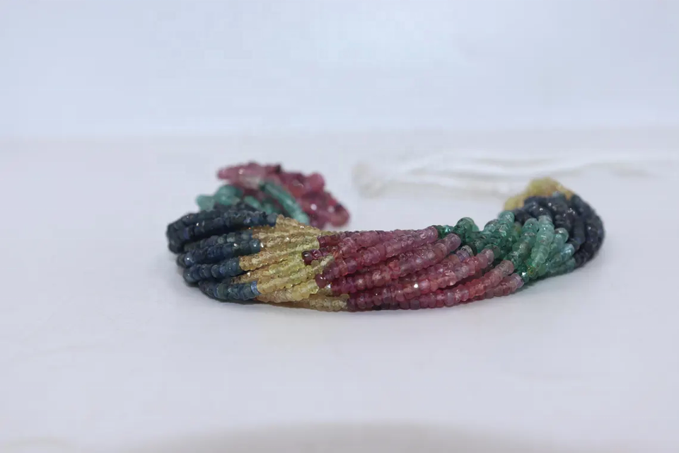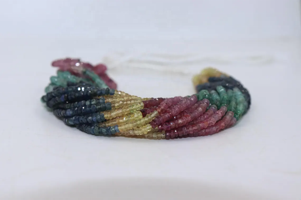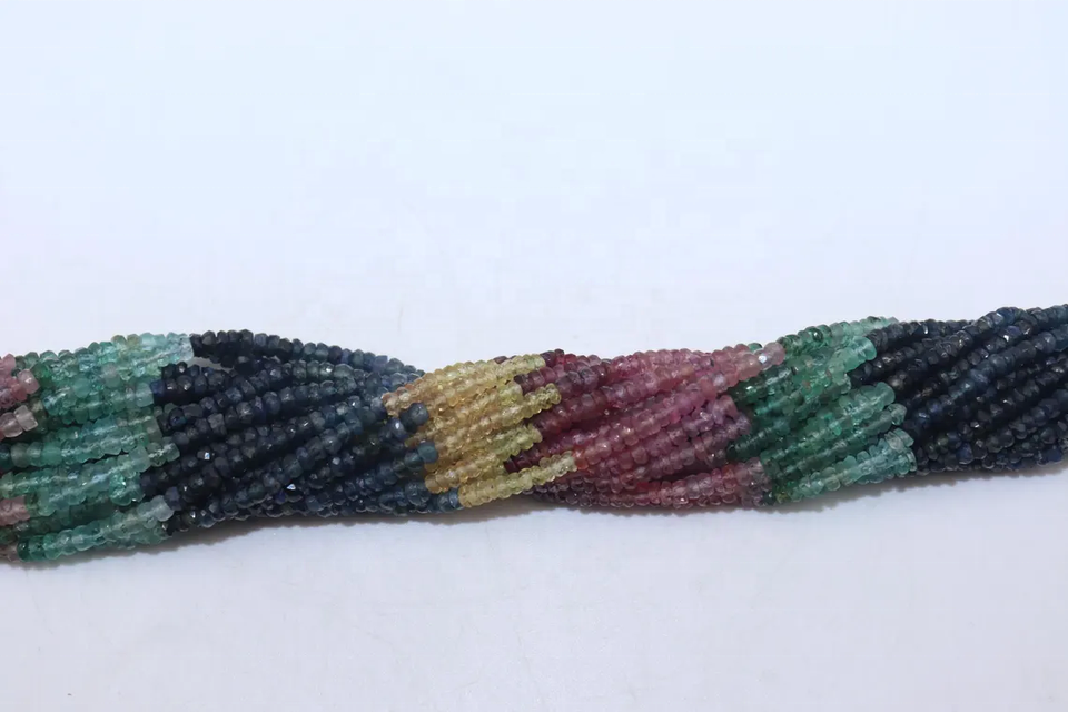 ลูกปัดทรงรอนเดลล์หลายเหลี่ยม AAA ขนาด 3 มม. ลูกปัดอัญมณีหลากชนิด ลูกปัดแซฟไฟร์หลากสี ลูกปัดสำหรับทำเครื่องประดับ ลูกปัดมินิมอล