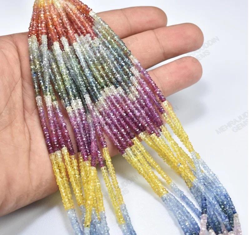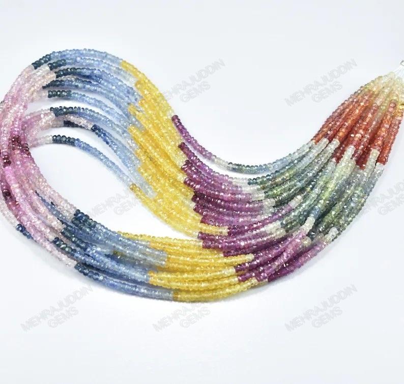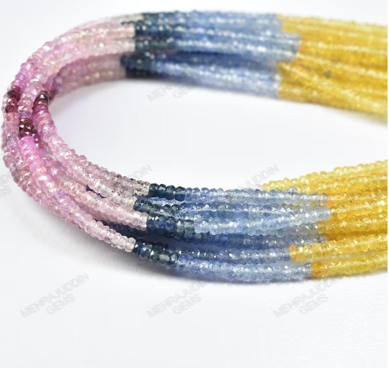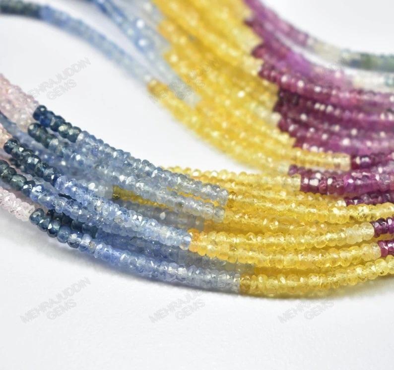 ลูกปัดแซฟไฟร์ทรงรอนเดลล์หลายเหลี่ยม AAA++ ขนาด 3 มม. อัญมณีธรรมชาติสำหรับทำเครื่องประดับ พร้อมใบรับรองการประเมินจากบุคคลที่สาม รุ่น MG-NU0828
