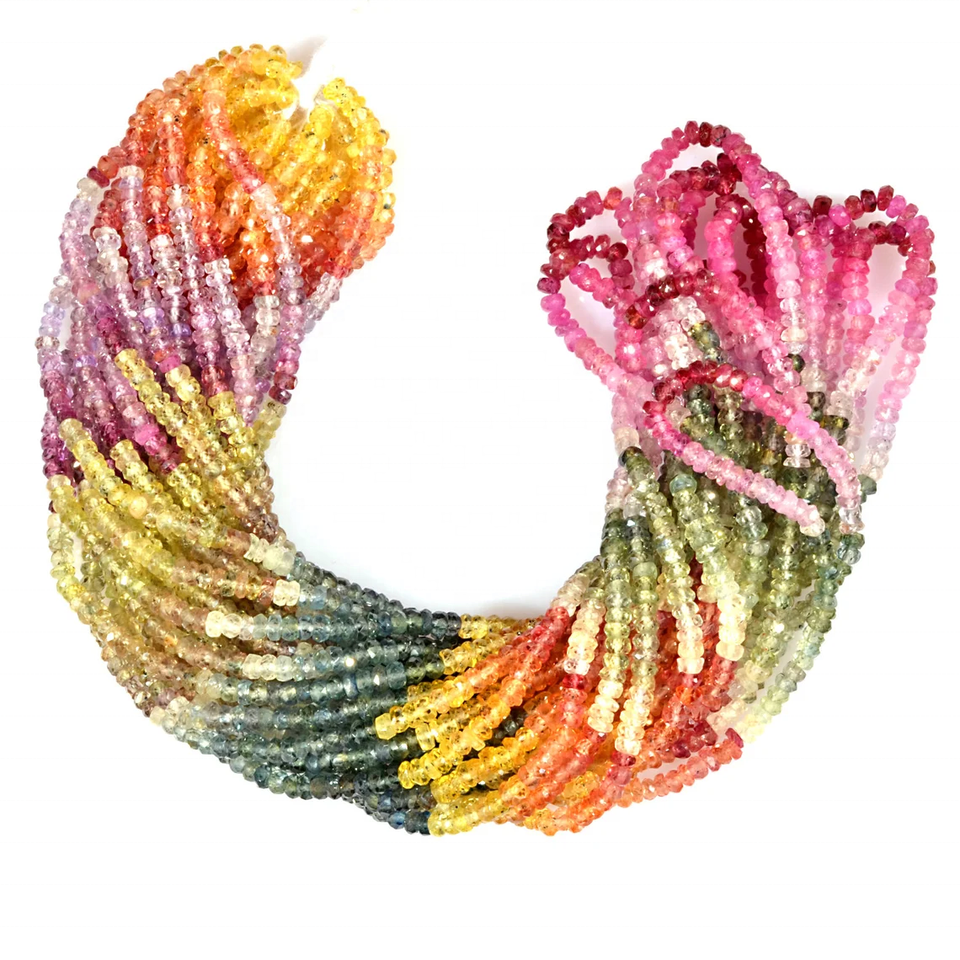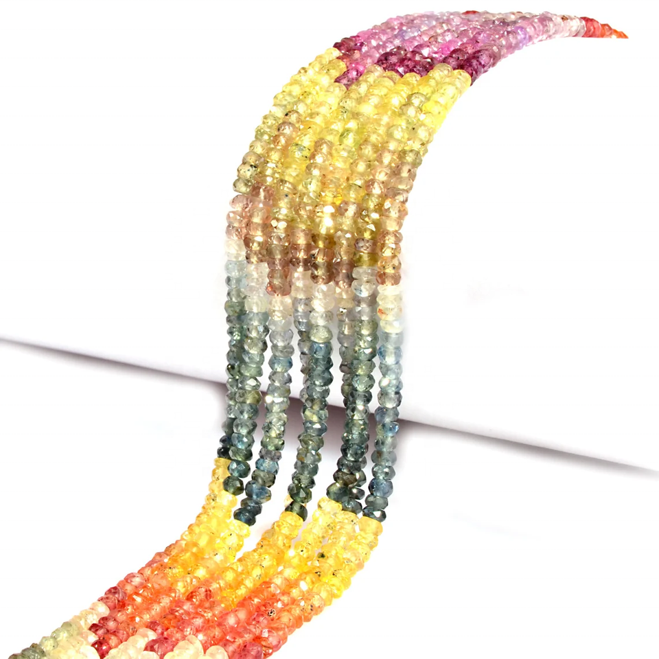 ลูกปัดทรงรอนเดลเหลี่ยมเพชรหลากสีแซฟไฟร์