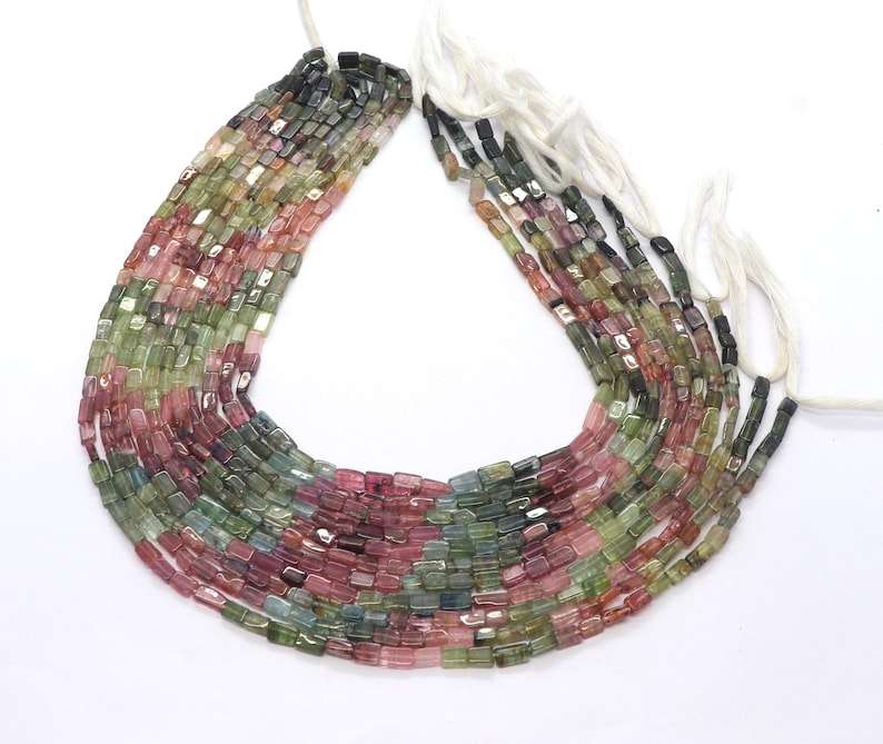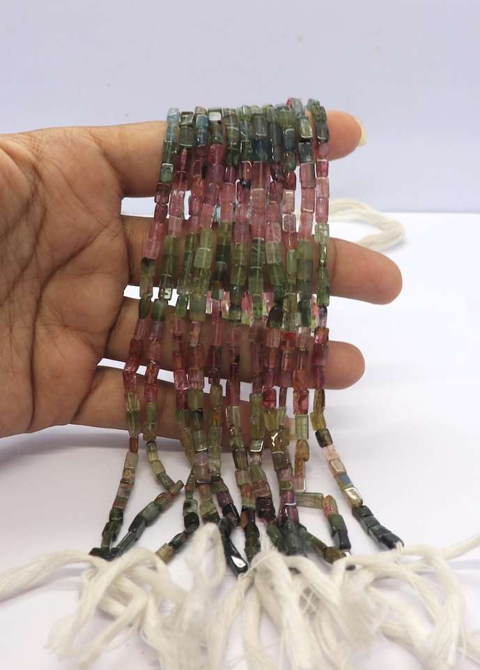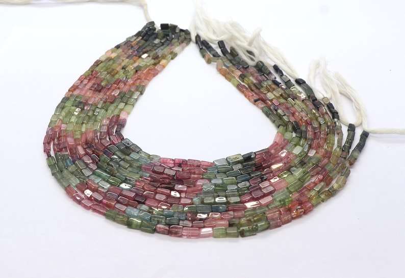 ลูกปัดทัวร์มาลีนทรงสี่เหลี่ยมเรียบ AAA ขนาด 4 มม. ลูกปัดพลอยทัวร์มาลีนสีแตงโม 13 นิ้ว ลูกปัดทัวร์มาลีนทรงสี่เหลี่ยมเรียบหลายสี